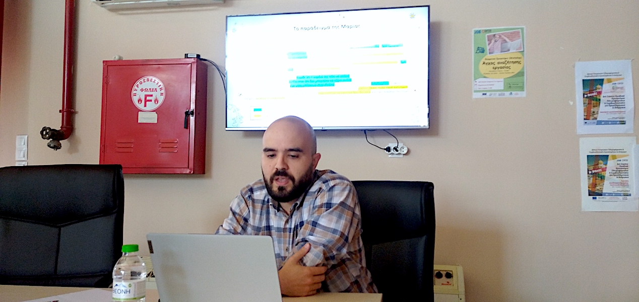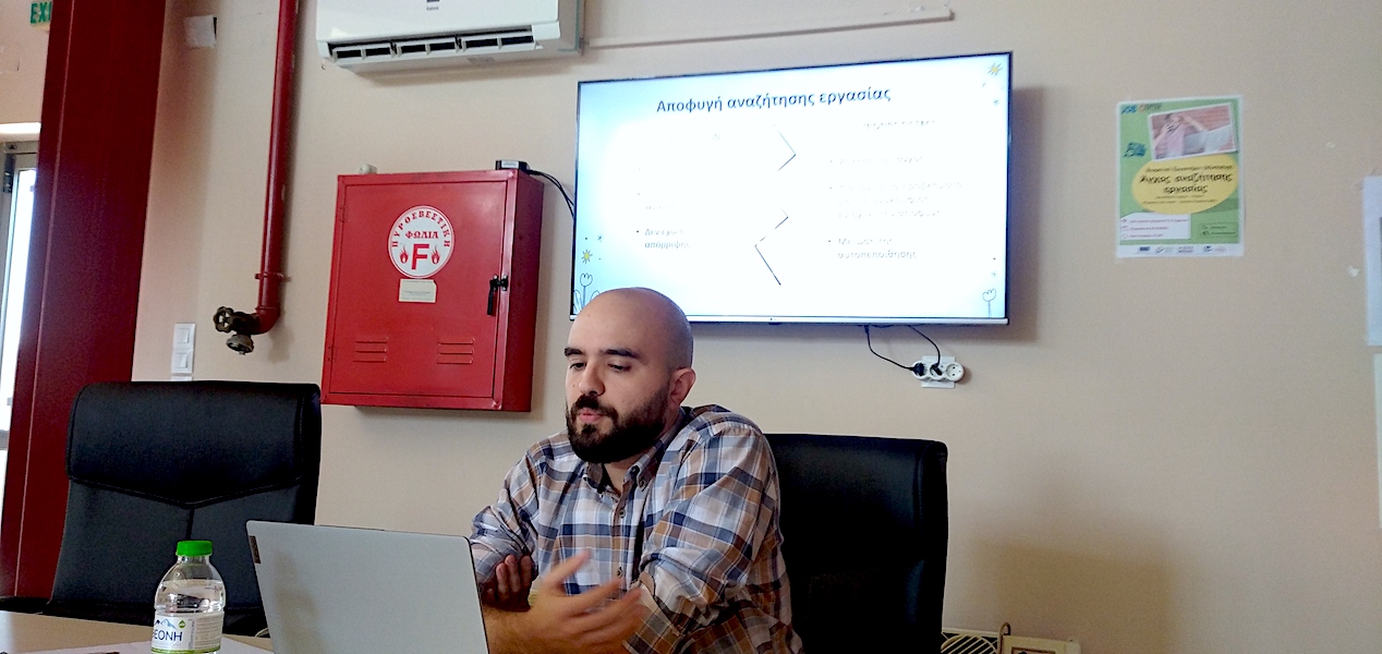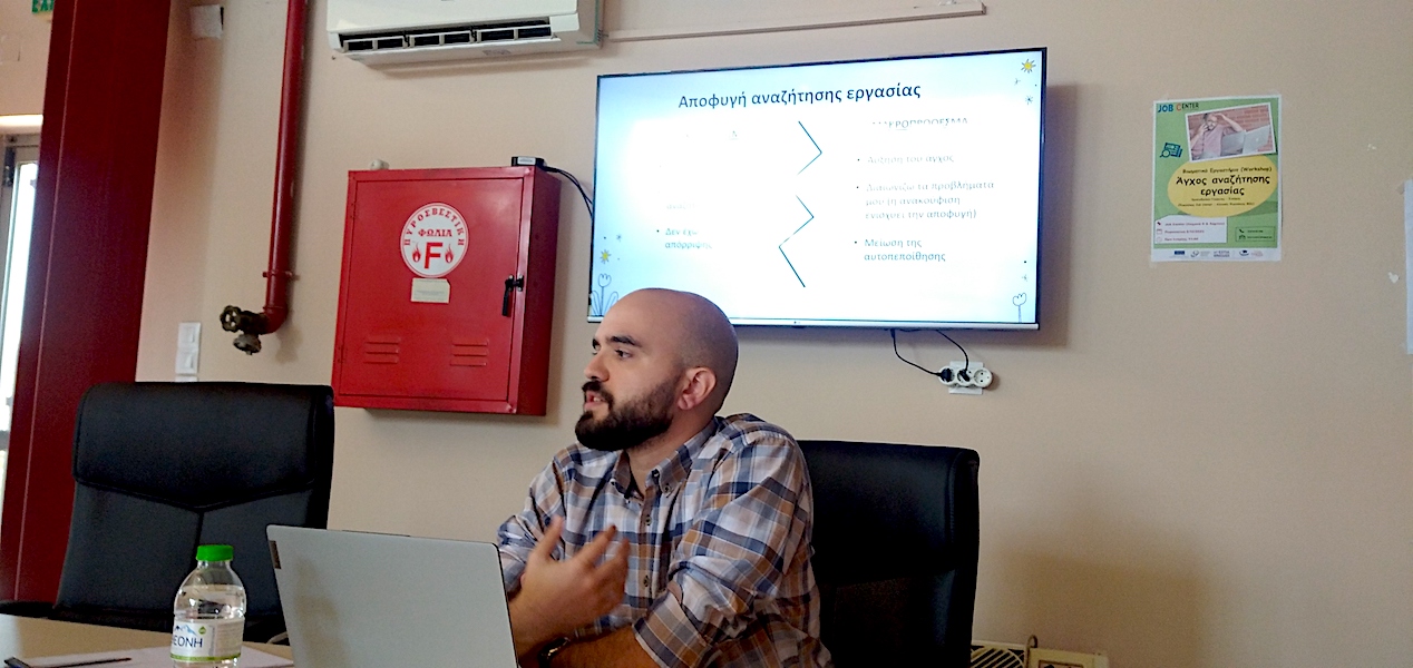 Οι συμμετέχοντες ήταν ένα μικρό group από ωφελούμενους της δομής, οι οποίοι είχαν εκφράσει ενδιαφέρον για τον εν λόγω θέμα, ενώ εισηγητής ήταν ο ψυχολόγος του Job Center, κος Χριστοδούλου Γεώργιος – Σταύρος.
