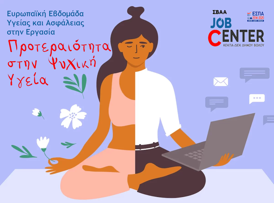 Εμείς ως Job Center του Δήμου Βόλου, συμβάλλουμε άμεσα στην προώθηση της ψυχικής υγείας στον εργασιακό χώρο τόσο, με τις συνεδρίες ψυχολογικής συμβουλευτικής και ενδυνάμωσης των εργαζομένων όσο και με την διοργάνωση βιωματικών εργαστηρίων (π.χ. «Άγχος αναζήτησης εργασίας»).