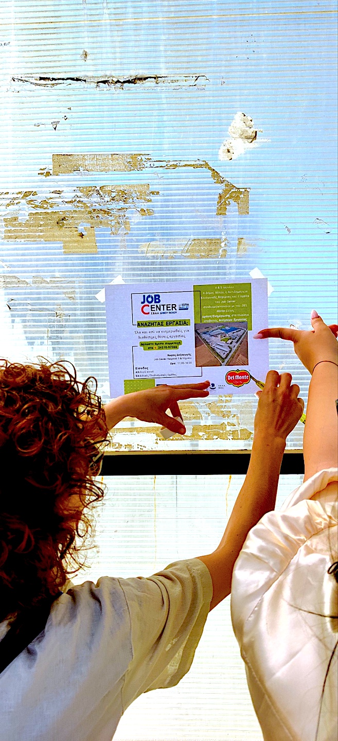 Στις 20, 23 και 24 του Μάη τα στελέχη του Job Center χωρισμένα σε δύο ομάδες, ενημέρωσαν κατοίκους, υπηρεσίες και τοπικές εκκλησίες (Νεάπολη, Αγίους Αναργύρους και στο Παλαιό Λιμεναρχείο), έκαναν αφισοκόλληση και μοίρασαν προσκλήσεις για τη διήμερη δράση διασύνδεσης με την αγορά εργασίας που θα πραγματοποιηθεί σε συνεργασία με την DEL MONTE Ελλάς στις 4 και 5 Ιουνίου στο χώρο του Job Center με δεκάδες .
