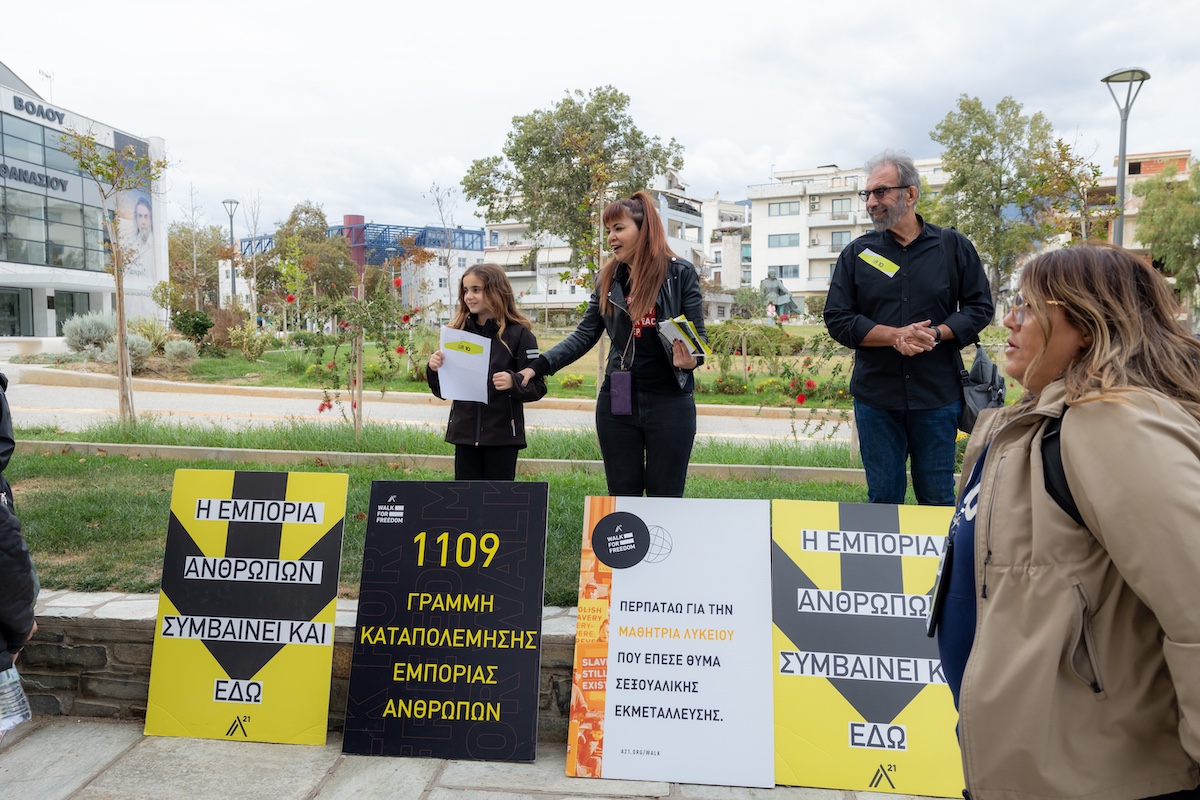Το Σάββατο 19.10.2024 στις 17:15μμ, πραγματοποιήθηκε στο πλαίσιο της Πανευρωπαϊκής Ημέρας για την ευαισθητοποίηση για Ανθρώπινο Εμπόριο το 10ο Περπάτημα για την Ελευθερία στις 6 ηπείρους και σε 39 χώρες παγκοσμίως. Στην Ελλάδα πραγματοποιήθηκε στο Βόλο αλλά και στην Αθήνα, Πάτρα, Θεσσαλονίκη, Πύργο Ηλείας και Λευκάδα. Το εν λόγω περπάτημα αποτελεί την μεγαλύτερη δράση ενημέρωσης για το ανθρώπινο εμπόριο