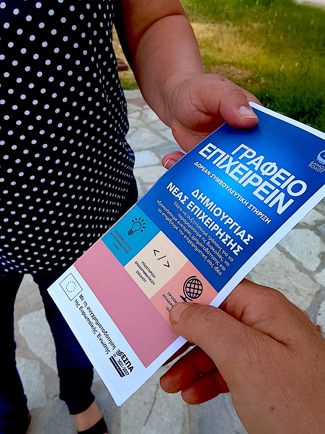 Συγκεκριμένα τα στελέχη του Γραφείου Επιχειρείν Φωτεινή Γιαννάκου Οικονομολόγος – Συντονίστρια, Δέσποινα Γουργιώτη Κοινωνική Λειτουργός και Ελένη Μπλέκου Διοικητικός, συνομίλησαν με τους κατοίκους αλλά και τους επαγγελματίες της περιοχής και τους ενημέρωσαν για τη λειτουργία και τις παρεχόμενες υπηρεσίες της νέας δομής του Δήμου.
