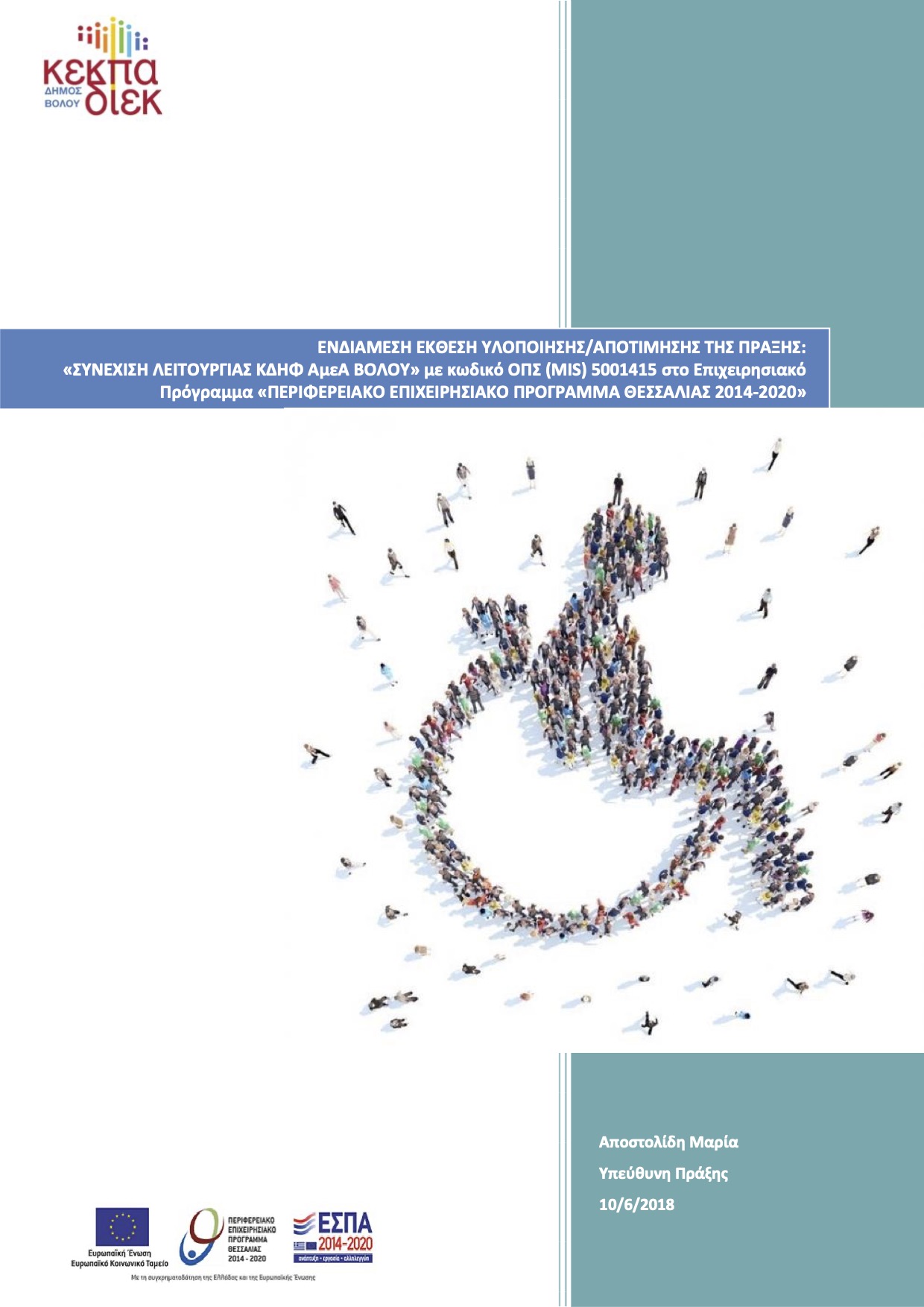 Η Πράξη εντάχθηκε στην προηγούμενη προγραμματική περίοδο ως «ΕΠΙΧΟΡΗΓΗΣΗ ΚΕΚΠΑ-ΔΙΕΚ ΓΙΑ ΤΗΝ ΥΛΟΠΟΙΗΣΗ ΤΗΣ ΠΡΑΞΗΣ "ΣΥΝΕΧΙΣΗ ΛΕΙΤΟΥΡΓΙΑΣ Κ.Δ.Η.Φ. ΑΜΕΑ ΒΟΛΟΥ"» με Κωδικό ΟΠΣ 5001415 στο Επιχειρησιακό Πρόγραμμα «Περιφερειακό επιχειρησιακό πρόγραμμα Θεσσαλίας 2014-2020»