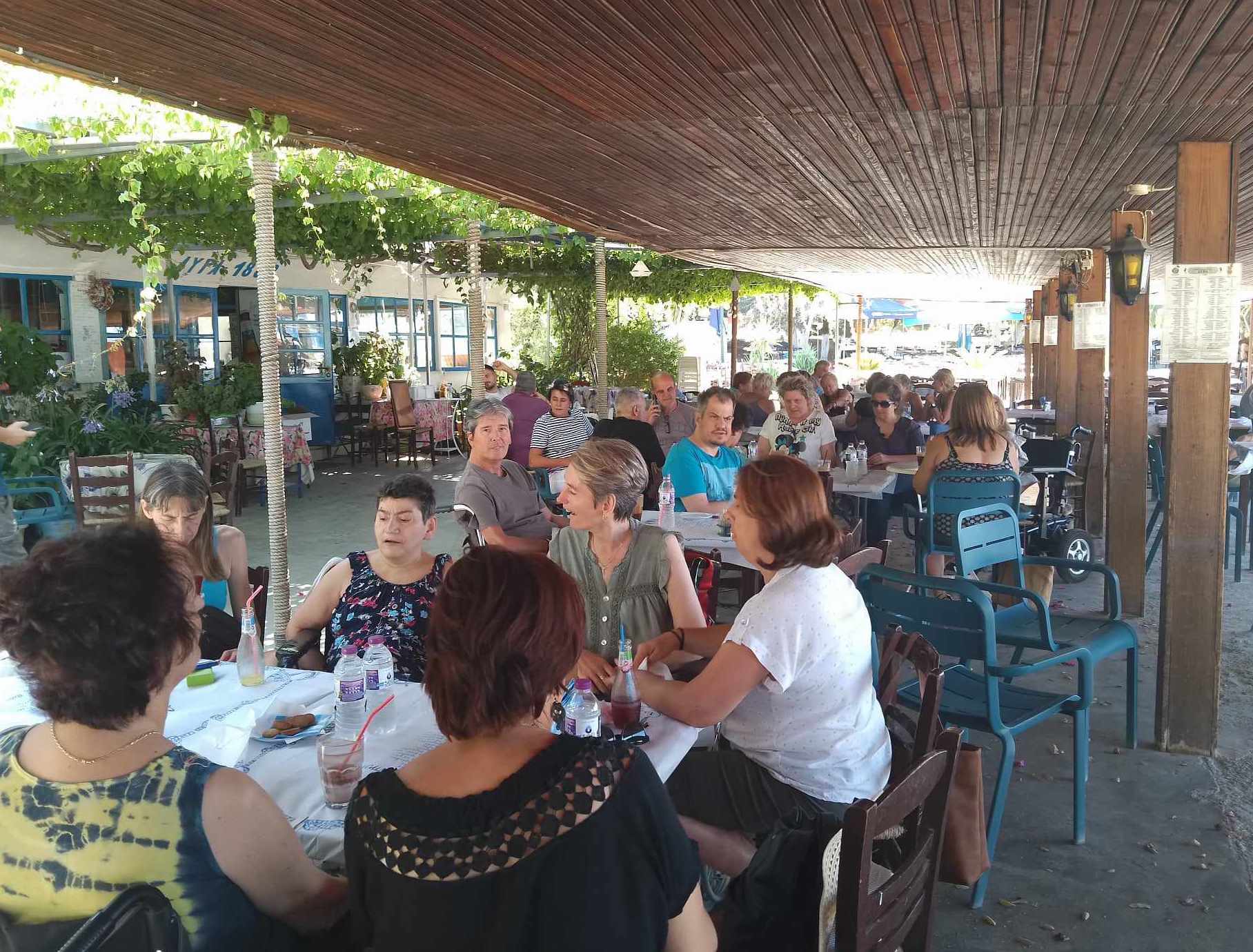 ΔΕΛΤΙΟ ΤΥΠΟΥ Στο πλαίσιο της ψυχαγωγίας οι ωφελούμενοι και το προσωπικό της δομής KΔΗΦ-ΑμεΑ, την Tρίτη 8/8/2023, επισκέφτηκαν τη γνωστή καφετέρεια του Βόλου, "ΑΥΡΑ΄". Εκεί τους δόθηκε η δυνατότητα να απολαύσουν τον καφέ τους και τη χαλαρή συζήτηση τόσο μεταξύ τους όσο και με το προσωπικό της δομής.