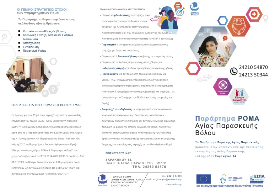 Υπηρεσίες Κοινωνικής ένταξης των Ρομά της Αγίας Παρασκευής στο Βόλο |