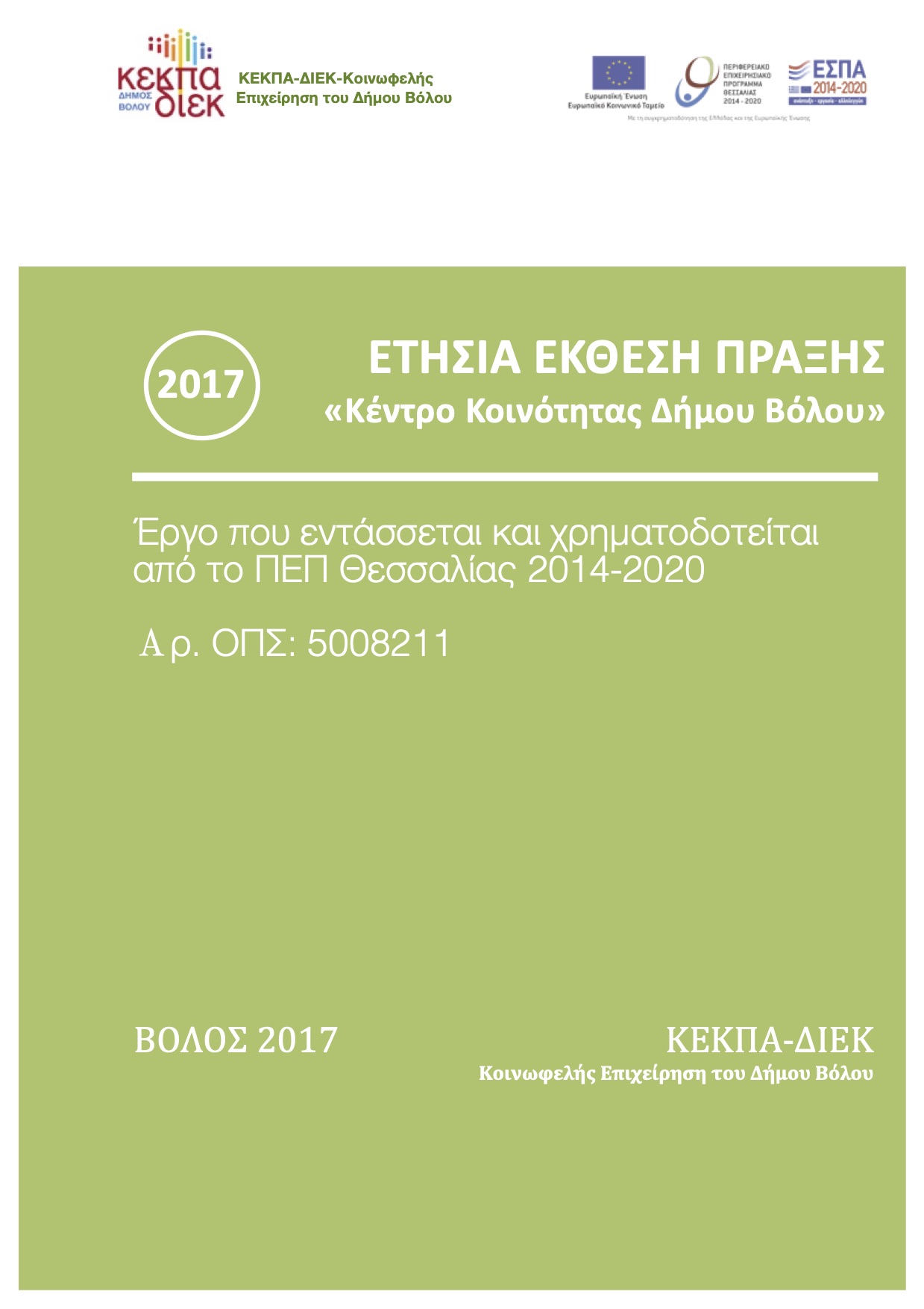 (2017) ΕΤΗΣΙΑ ΕΚΘΕΣΗ ΠΡΑΞΗΣ «Κέντρο Κοινότητας Δήμου Βόλου», ΟΠΣ 5002811