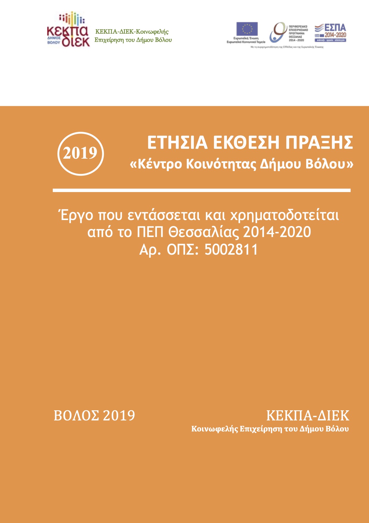 (2019) ΕΤΗΣΙΑ ΕΚΘΕΣΗ ΠΡΑΞΗΣ «Κέντρο Κοινότητας Δήμου Βόλου», ΟΠΣ 5002811
