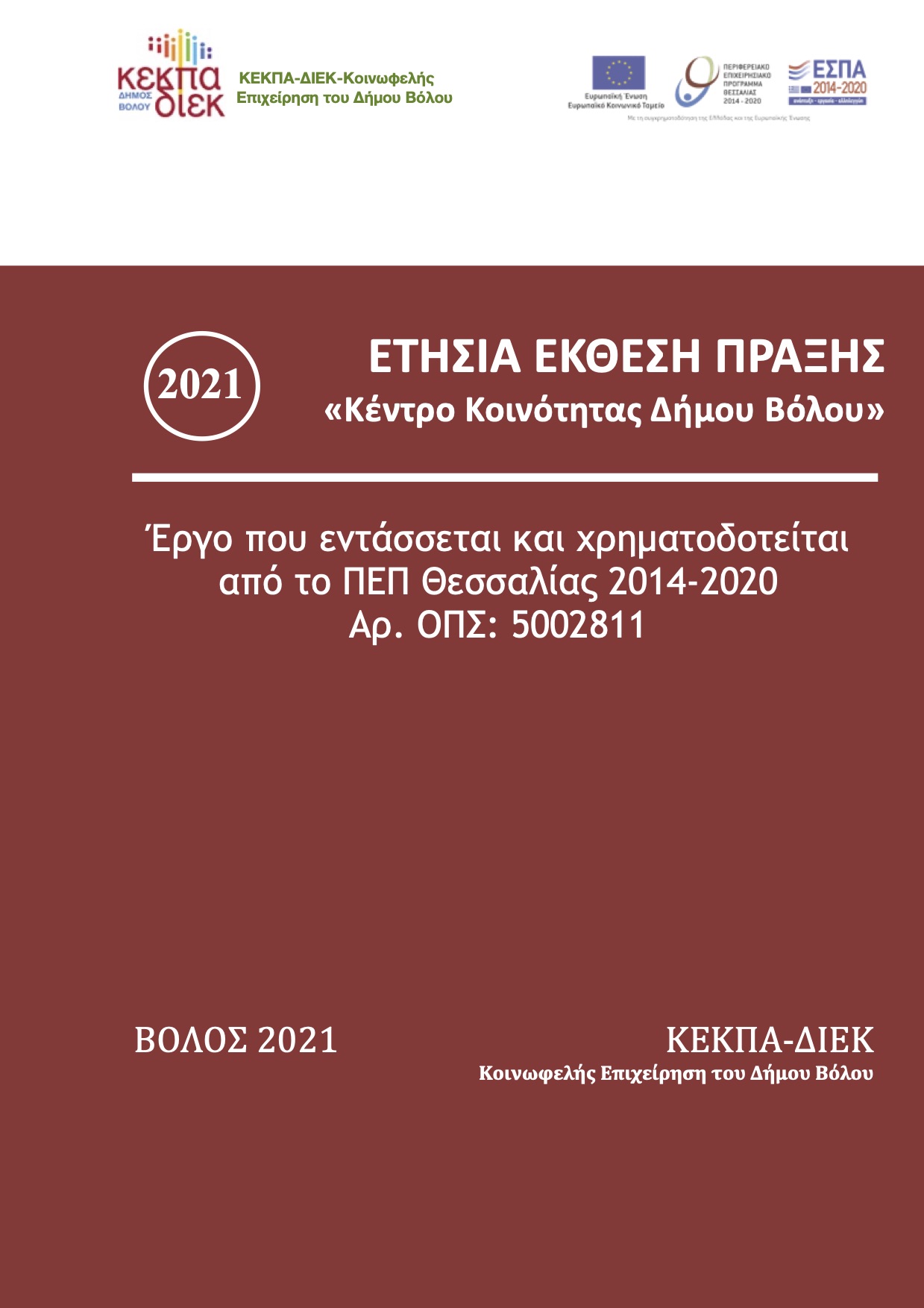 (2021) ΕΤΗΣΙΑ ΕΚΘΕΣΗ ΠΡΑΞΗΣ «Κέντρο Κοινότητας Δήμου Βόλου», ΟΠΣ 5002811