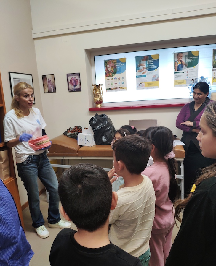 ΔΕΛΤΙΟ ΤΥΠΟΥ Παράλληλα με τις ομάδες των γυναικών πραγματοποιήθηκε οδοντιατρικήεξέταση στα παιδιά του οικισμού στη 1 & 2 Δεκεμβρίου 2023. Οδοντίατροι από την Ιατρική σχολή του ΕΚΠΑ εξέτασαν 49 παιδιά σχολικής ηλικίας στα οποία δόθηκαν οδηγίες, κατευθύνσεις αλλά και παραπομπές όπου χρειάστηκε.