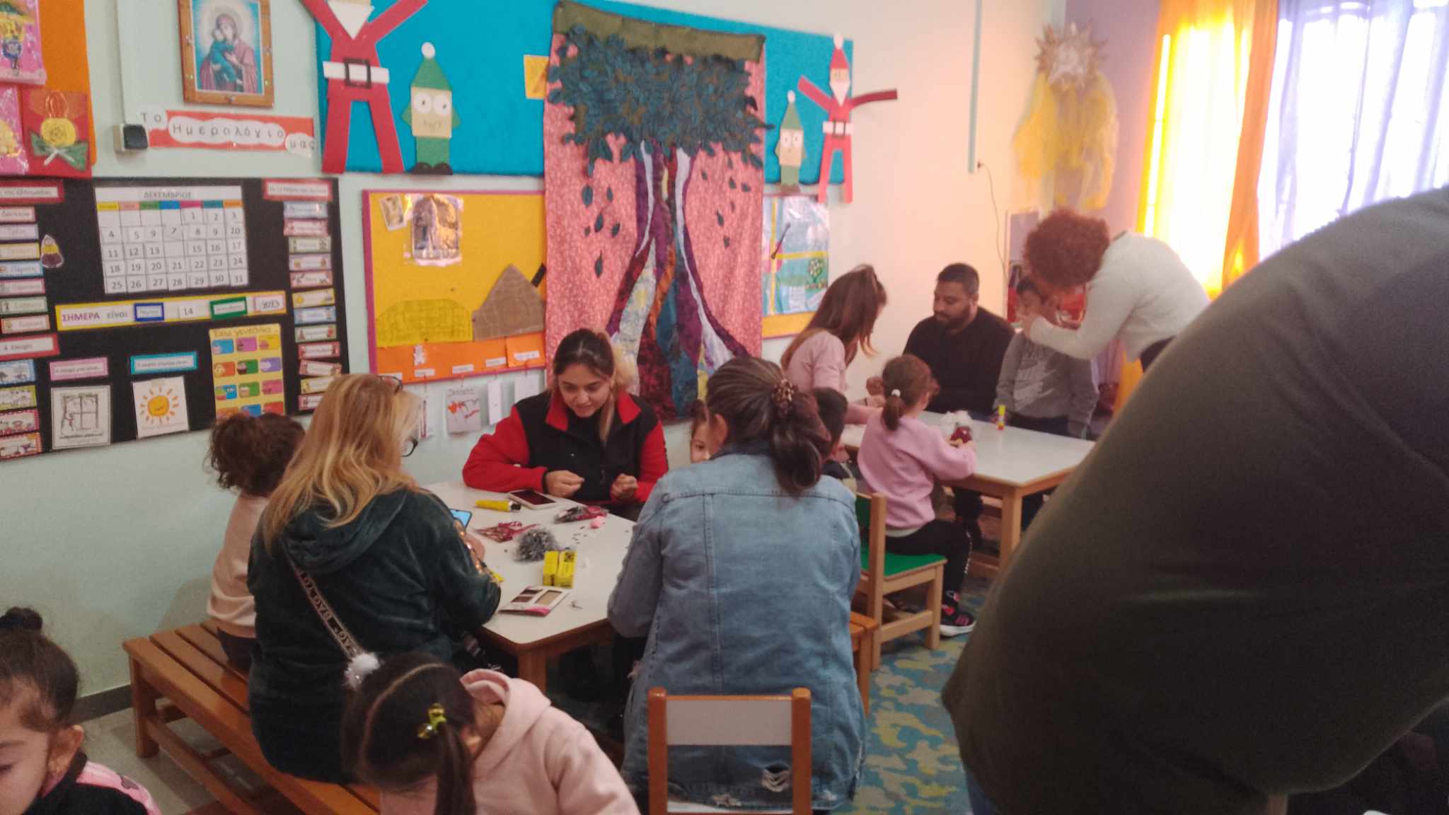 Τη Πέμπτη 14 Δεκεμβρίου η διαμεσολαβήτρια, η ψυχολόγος και η γυμνάστρια-εμψυχώτρια του Παραρτήματος Ρομά Αλιβερίου σε συνεργασία με τους εκπαιδευτικούς του 8ου Νηπιαγωγείου Νέας Ιωνίας οργάνωσαν εργαστήρι κατασκευής χριστουγεννιάτικων στολιδιών με τους γονείς και τους μαθητές του νηπιαγωγείου.