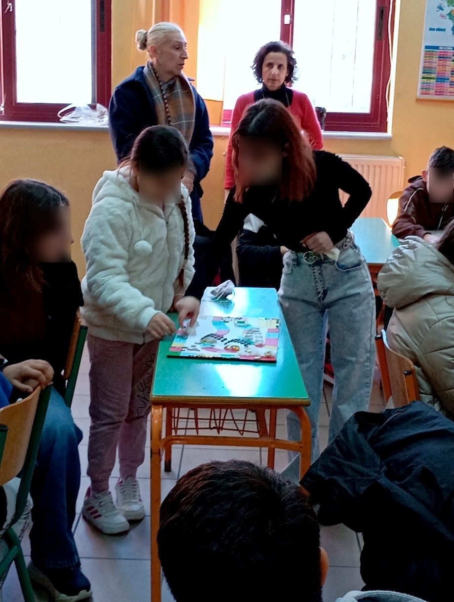 Σε συνεργασία με το 10ο δημοτικό σχολείο Νέας Ιωνίας πραγματοποιηθήκατε παρέμβαση στους μαθητές της Ε & ΣΤ τάξης για την αξία της διατήρησης και διάδοσης της μητρικής γλώσσας. Μέσω επιτραπέζιου παιχνιδιού- και με τη βοήθεια ζαριών και πιονιών-οι μαθητές προσπάθησαν να απαντήσουν σε ερωτήσεις που βασίζονταν στη γνώση της Ρομανί αλλά και στις διαφορετικές της διαλέκτους. Η θεματολογία των ερωτήσεων πήγαζε από τις συνήθειες των Ρομά, τα τραγούδια τους και τα έθιμά τους.