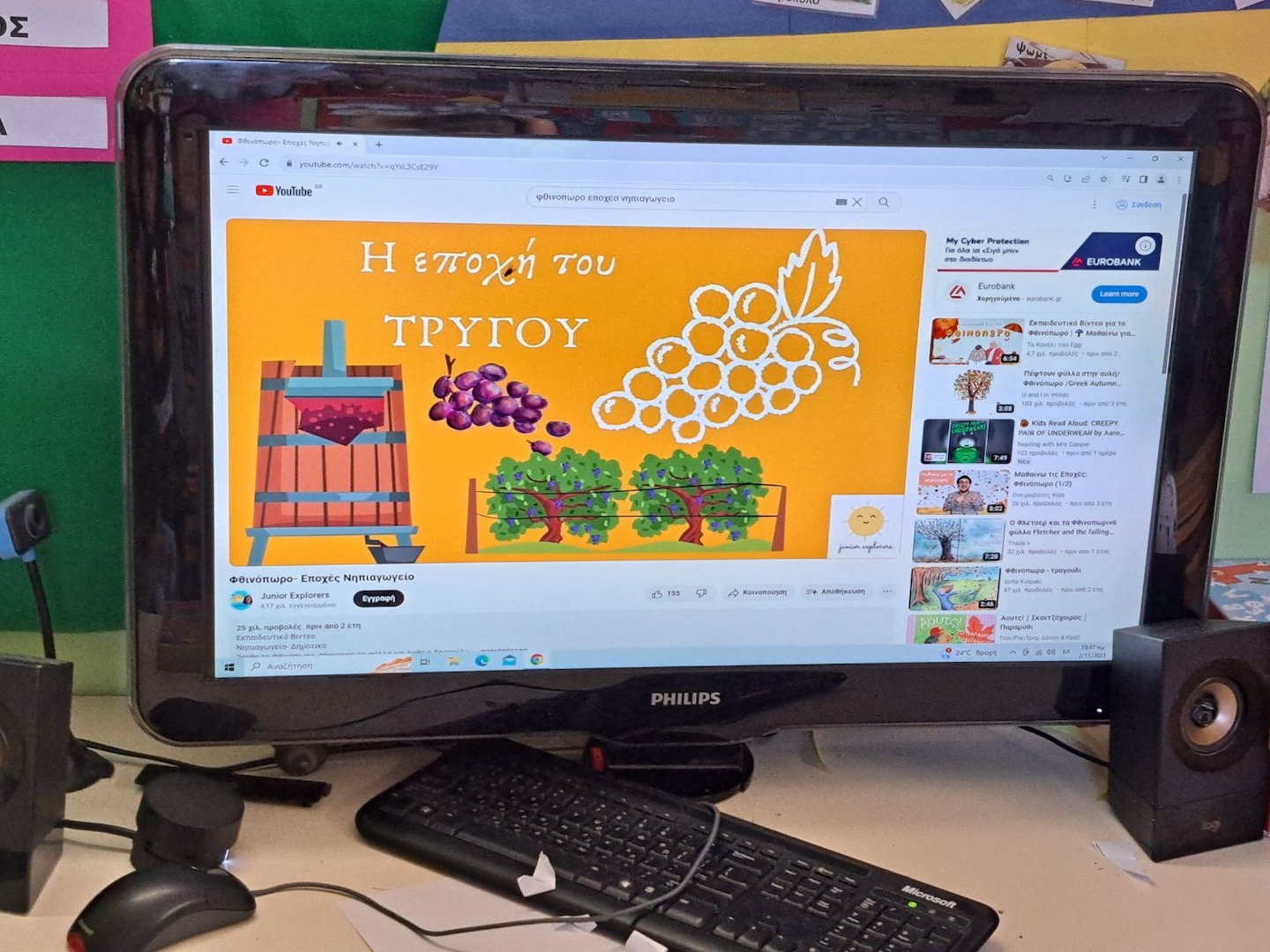 Με αφορμή την εποχή που διανύουμε βρεθήκαμε στο χώρο του 16ου Νηπιαγωγείου Βόλου για την πραγματοποίηση ενός βιωματικού εργαστηρίου. Η δράση ξεκίνησε με την γνωριμία μας με τα νέα παιδιά και στην συνέχεια αποτελούνταν από φθινοπωρινή κατασκευή και παρακολούθηση εκπαιδευτικού βίντεο που αφορούσε τα χρώματα ,τους μήνες, φρούτα , λαχανικά και ότι θυμίζει φθινόπωρο όπου τα παιδιά με ιδιαίτερη χαρά και προσοχή παρακολούθησαν και γέμισαν με απορίες.