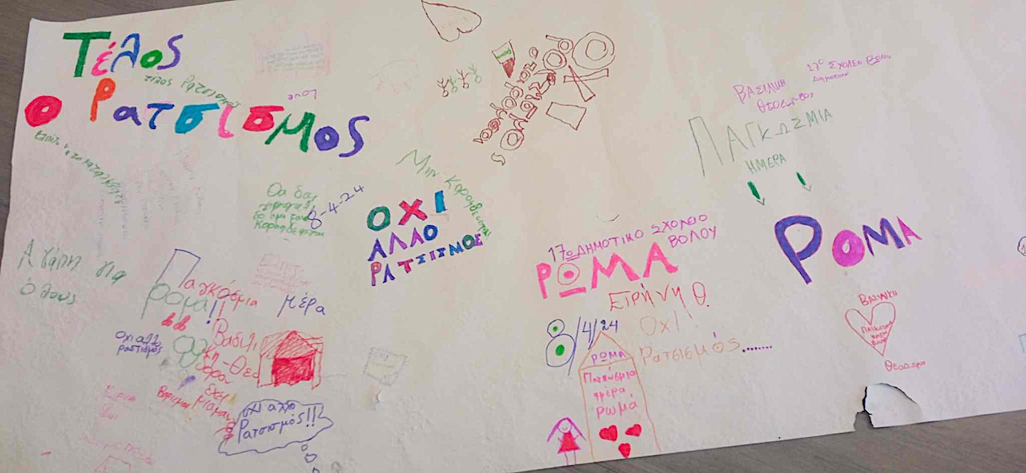Τέλος τα παιδιά αποτύπωσαν τις σκέψεις και τα συναισθήματά τους στο χαρτί εκφράζοντας μηνύματα κατά του ρατσισμού, το σπάσιμο των στερεοτύπων την ισότητα και την αρμονική συνύπαρξη.