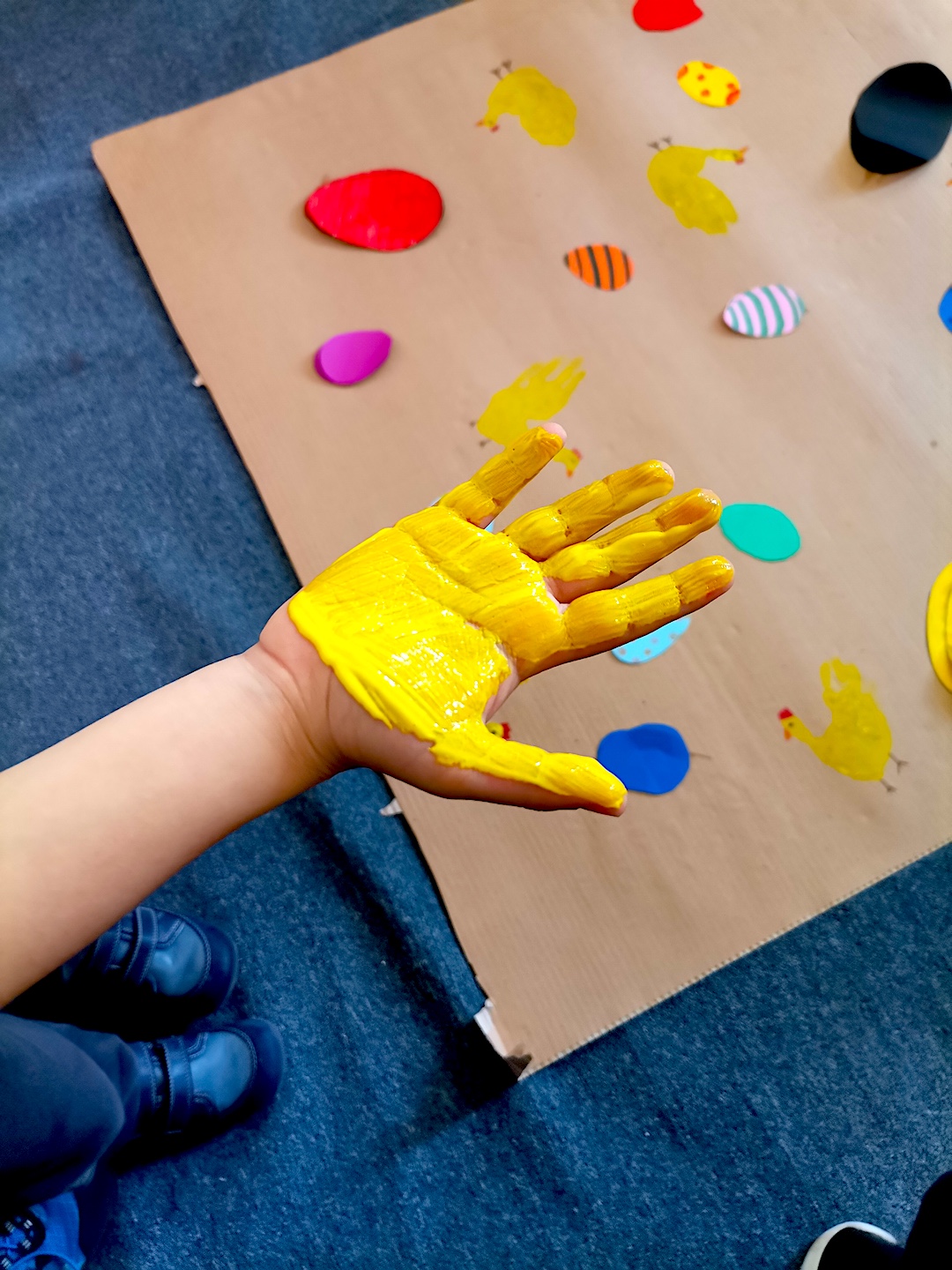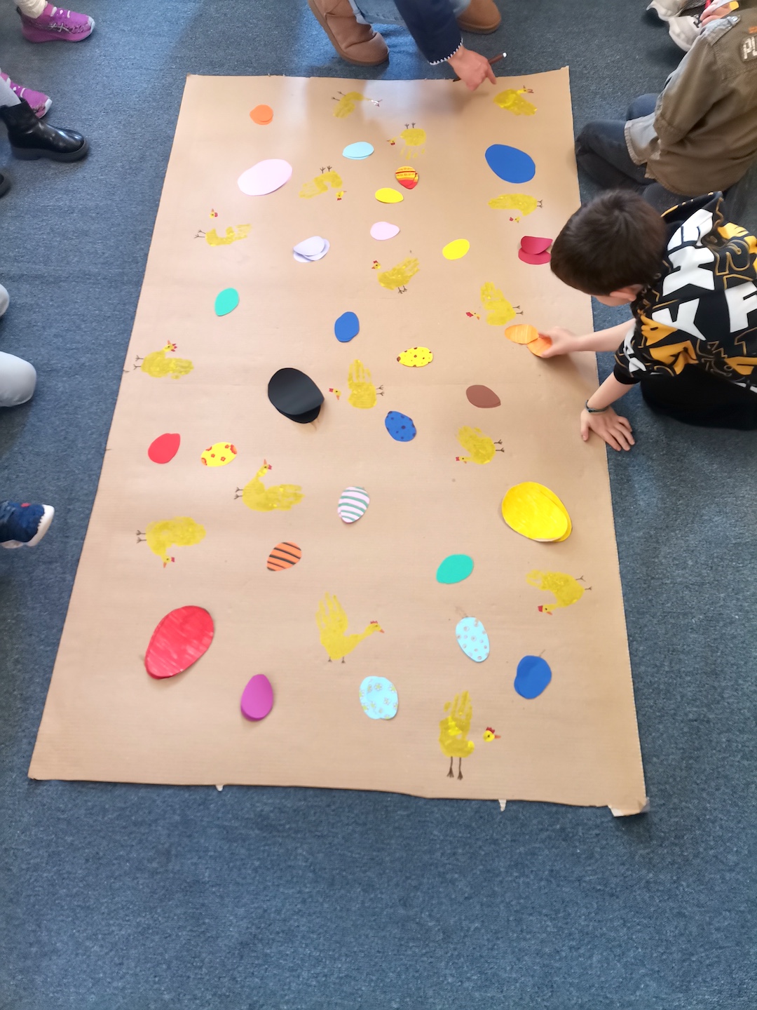 Με αφορμή το Πάσχα που κοντοζυγώνει με μεγάλη μας χαρά βρεθήκαμε στο χώρο του 16ου Νηπιαγωγείου Βόλου για την πραγματοποίηση ενός βιωματικού εργαστηρίου. Κατασκευάστηκαν στεφάνια που με πολύ χαρά έφτιαξαν οι μικροί μας φίλοι. Χρησιμοποίησαν την φαντασία τους, δημιούργησαν πολύχρωμα αβγουλάκια για τα στεφανάκια τους, «λέρωσαν» τα χεράκια τους προκειμένου να φτιάξουν κοτοπουλάκια και να διακοσμήσουν το παιχνίδι που είχε στηθεί στο πάτωμα. Μιλήσαμε για τα έθιμα του Πάσχα και ανταλλάξαμε ευχές.