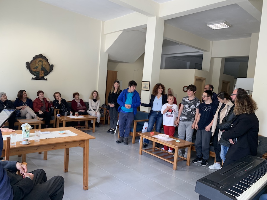 Στη συνέχεια, παιδιά και ηλικιωμένοι/νες τραγούδησαν, χόρεψαν και διασκέδασαν με τη ψυχή τους με τη μουσική συνοδεία του καθηγητή μουσικής του Ε.Ε.Ε.ΕΚ. Αλμυρού κ. Δημήτρη Τσακιρίδη. Η συνάντηση έκλεισε με την προσφορά αναμνηστικών δώρων των μαθητών στους/στις ηλικιωμένους /νες από τα εργαστήρια Γεωπονίας και Κεραμικής του σχολείου και με πλούσιο κέρασμα από τις εργαζόμενες του Κ.Η.Φ.Η. Νέας Αγχιάλου προς εκπαιδευτικούς και μαθητές/τριες του Ε.Ε.Ε.ΕΚ. Αλμυρού.