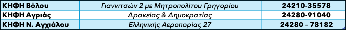 Τα ΚΗΦΗ (Κέντρα Ημερήσιας Φροντίδας Ηλικιωμένων) Βόλου, Αγριάς και Νέας Αγχιάλου του τμήματος ΚΑΠΗ της Διεύθυνσης Κοινωνικής Προστασίας, ΚΑΠΗ και Δημόσιας Υγείας του Δήμου Βόλου, καλούν τους ενδιαφερόμενους να καταθέσουν αιτήσεις συμμετοχής με σκοπό την ένταξή τους στη συμπληρωματική κατάσταση ωφελουμένων στις δομές.