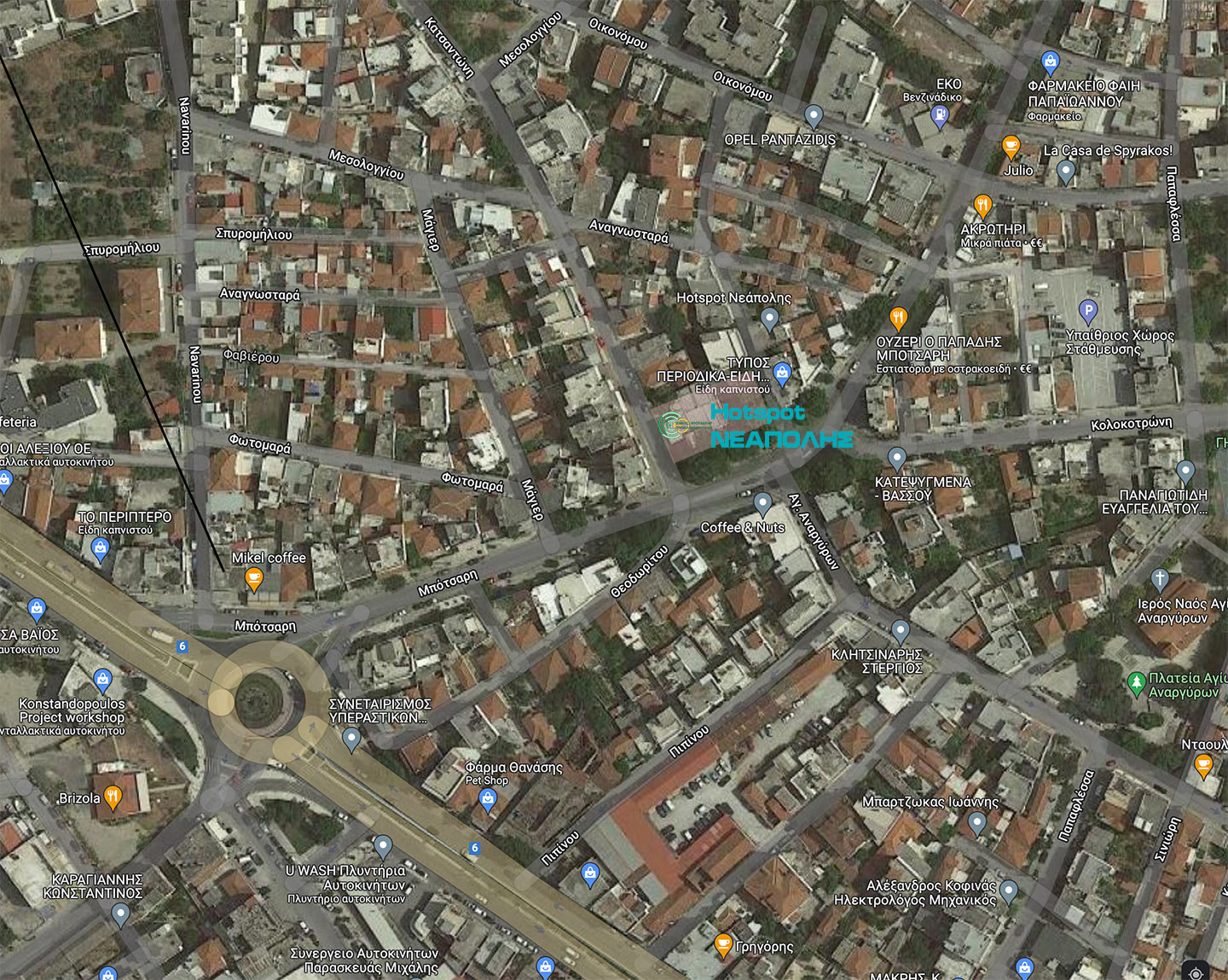 Οι εγκαταστάσεις του Hotspot Νεάπολης (Υποέργο Ι της Πράξης) βρίσκονται μεταξύ των οδών Αραχώβης 1, Μπότσαρη και Κατσαντώνη 2-4 στους Αγίους Αναργύρους Βόλου