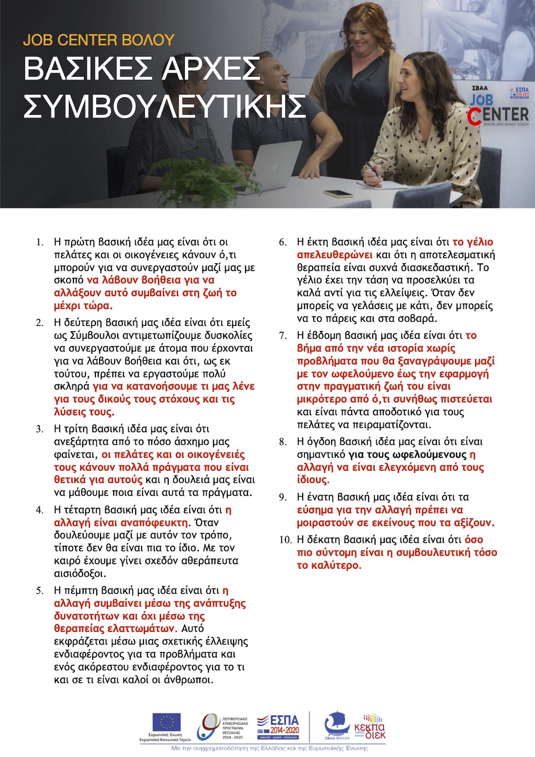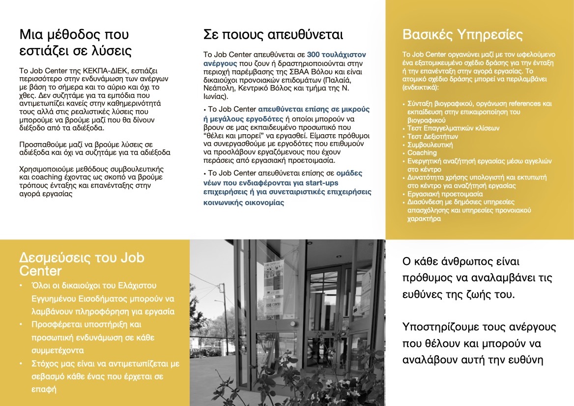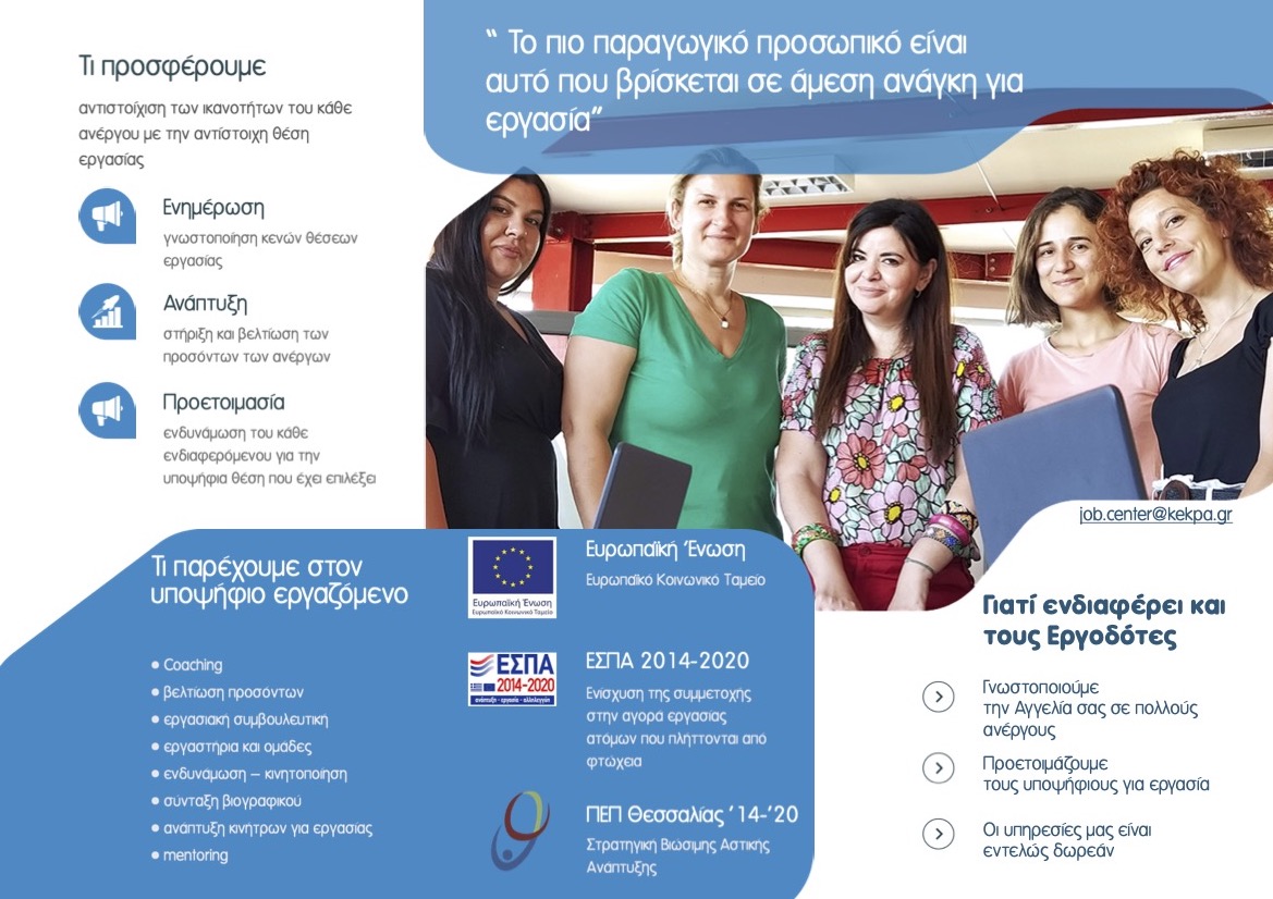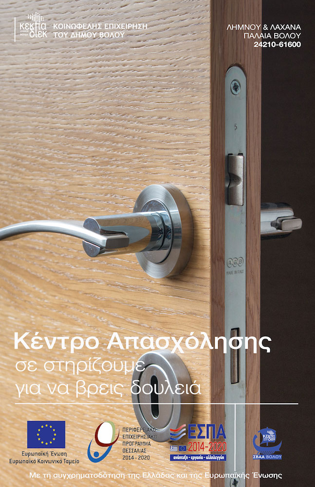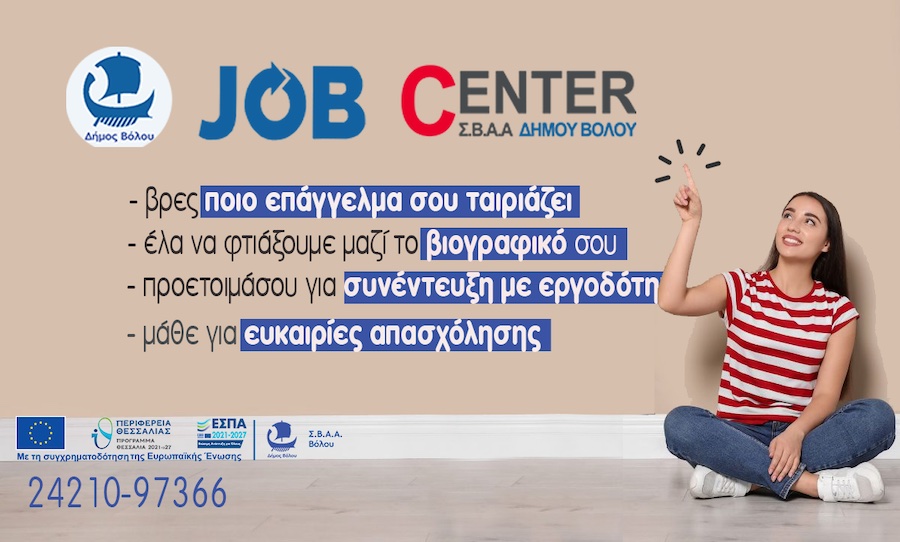 Συνέχιση λειτουργίας Γραφείου Διευκόλυνσης, ενδυνάμωσης και τεκμηρίωσης της απασχόλησης (Job Center) στην περιοχή παρέμβασης - ΣΒΑΑ Βόλου
