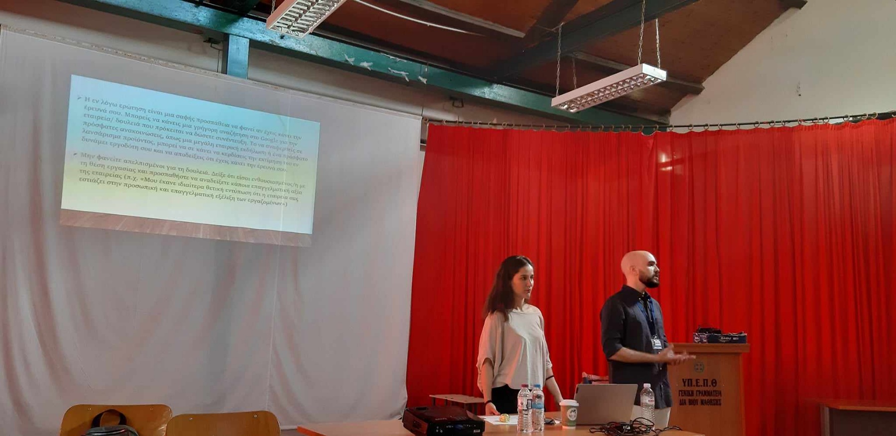 Σκοπός της παρουσίασης ήταν η εκπαίδευση των συμμετεχόντων/συμμετεχουσών σε θέματα όπως, η κατανόηση βασικών όρων (hard skills και soft skills), ο τρόπος που δομούμε το βιογραφικό μας για να είναι σύγχρονο και ενημερωμένο, καθώς και τεχνικές αυτοπαρουσίασης σε μια συνέντευξη με έναν εν δυνάμει εργοδότη. Αυτό έγινε μέσω της βιωματικής συμμετοχής των σπουδαστών σε πιθανές ερωτήσεις συνέντευξης, όπως αυτές θέτονταν από τους εισηγητές, με ταυτόχρονη παροχή πιθανών απαντήσεων αλλά και συμβουλών τόσο από τους εισηγητές όσο και από τους καθηγητές τους. Οι σπουδαστές συμμετείχαν ενεργά, φέρνοντας στην παρουσίαση τις δικές τους εμπειρίες από συνεντεύξεις στις οποίες έχουν συμμετάσχει, ενώ έγινε προσπάθεια και για την επίλυση τυχόν αποριών.