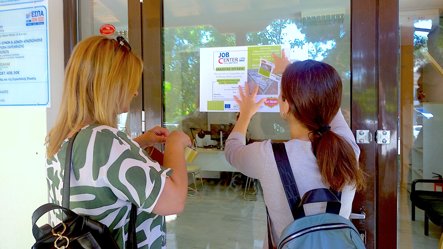 Στις 20, 23 και 24 του Μάη τα στελέχη του Job Center χωρισμένα σε δύο ομάδες, ενημέρωσαν κατοίκους, υπηρεσίες και τοπικές εκκλησίες (Νεάπολη, Αγίους Αναργύρους και στο Παλαιό Λιμεναρχείο), έκαναν αφισοκόλληση και μοίρασαν προσκλήσεις για τη διήμερη δράση διασύνδεσης με την αγορά εργασίας που θα πραγματοποιηθεί σε συνεργασία με την DEL MONTE Ελλάς στις 4 και 5 Ιουνίου στο χώρο του Job Center με δεκάδες .