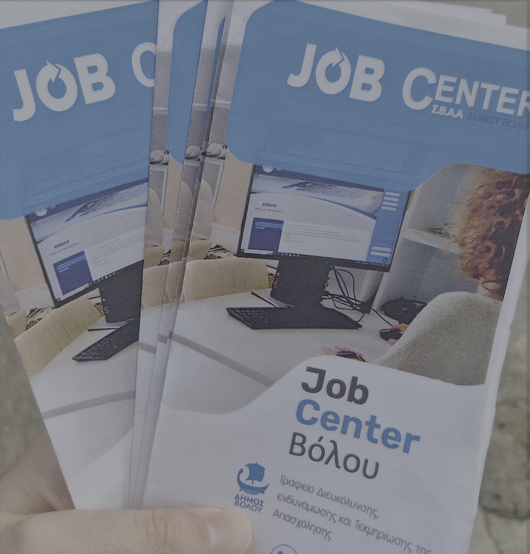 Η δομη JOB CENTER εγκρίθηκε ως δομή προώθηση της απασόλησης ευπαθών ομάδων στα πλαίσια τη ΣΒΑΑ Βόλου 2014-'20 και υλοποιήθηκε στο διάστημα 04-22 έως 31-12-2023 με εξαιρετικά αποτελέσματα υπερκαλύπτοντας ποιοτικά και ποσοτικά τους στόχους του δείκτη αποτελέσματος και των λοιπών ποιοτικών του στόχων. Στη διάρκεια αυτής της περίοδου εξυπηρετήθηκαν πάνω από 430 ωφελούμενους (από 300 ωφελ. αρχικά στους στόχους του έργου), ενώ αναδείχθηκε ως κέντρο για την απασχόληση στην περιοχή ΣΒΑΑ Βόλου πιστοποιώντας την αναγκαιότητα συνέχισης του έργου. Η πράξη εντάσσεται στην εγκεκριμένη Στρατηγική Βιώσιμης Αστικής Ανάπτυξης του Δήμου Βόλου με τίτλο «ΣΤΡΑΤΗΓΙΚΗ ΒΙΩΣΙΜΗΣ ΑΣΤΙΚΗΣ ΑΝΑΠΤΥΞΗΣ (ΒΑΑ) 2021-'27». Το Γραφείο Διευκόλυνσης, ενδυνάμωσης και τεκμηρίωσης της απασχόλησης (Job Centre) είναι συνεχιζόμενη κοινωνική δομή που εφαρμόζει πρακτικές προώθησης της απασχόλησης των ανέργων και των ατόμων που πλήττονται από φτώχεια ή/και κοινωνικό αποκλεισμό και διασυνδέει τις υπηρεσίες απασχόλησης με τις αυτοδιοικητικές προνοιακές υπηρεσίες. Στις υπηρεσίες του περιλαμβάνονται και ατομικές συναντήσεις με ειδικούς σε θέματα ανθρώπινου δυναμικού και ψυχολογίας, ομάδες ψυχοκοινωνικής στήριξης, βιωματικά εργαστήρια εκπαίδευσης και συνεργασία με πιθανούς εργοδότες, φορείς για απασχόληση καθώς και κοινωνικούς φορείς για τη δυνατότητα απασχόλησης σε όσους πληρούν τις προδιαγραφές που τίθενται. Η δομή απευθύνεται σε ωφελούμενους ανέργους / μειονεκτούντα άτομα, κατά προτεραιότητα της περιοχής παρέμβασης της Στρατηγικής ΒΑΑ Βόλου, οι οποίοι εντάσσονται μέσω πρόσκλησης / συνέντευξης ή παραπομπής ως Δικαιούχοι του Ε.Ε.Ε. ή/και ως ωφελούμενοι κοινωνικών δομών και δομών υποδοχής /υποστήριξης ατόμων που πλήττονται από φτώχεια.