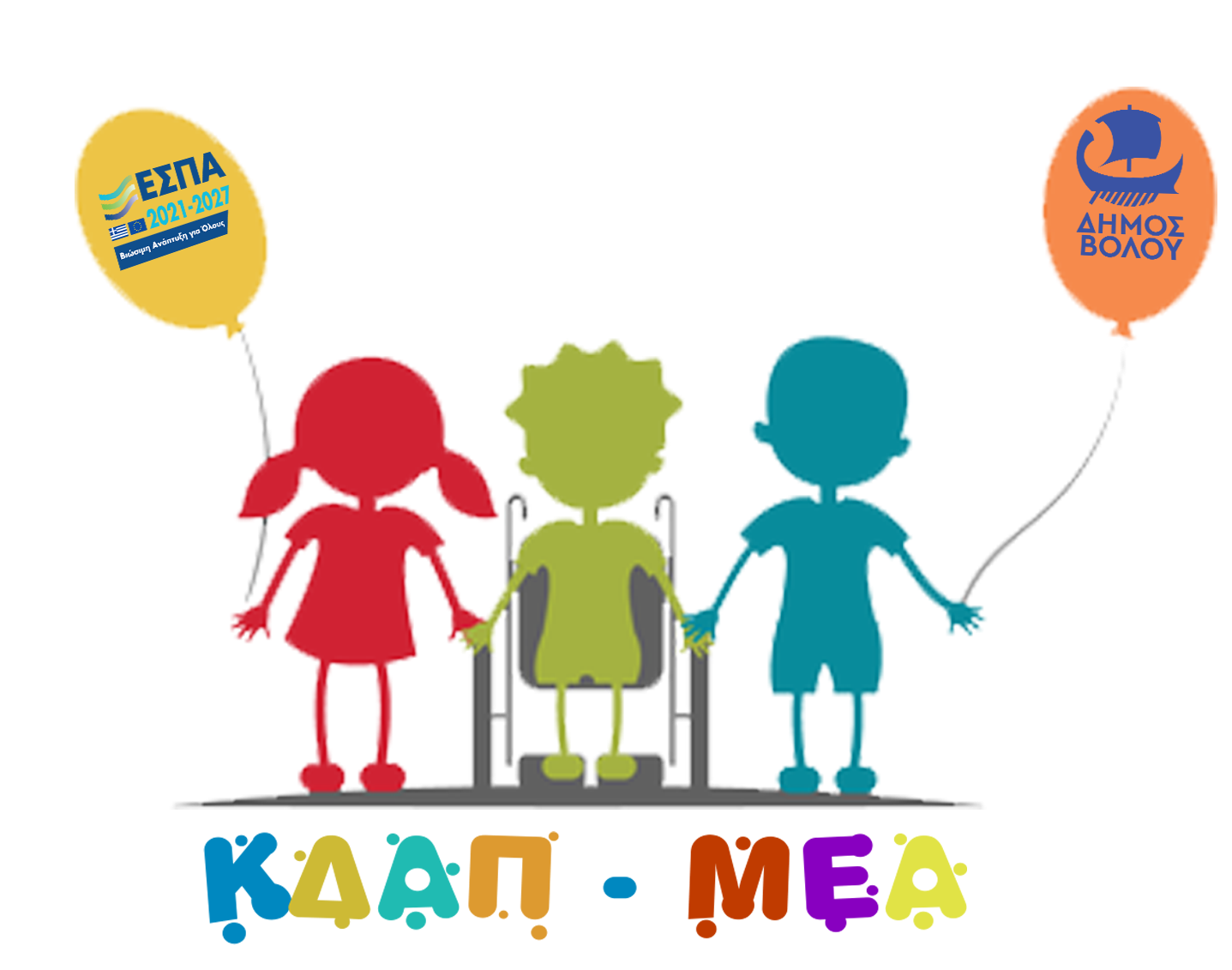 Το Κέντρο Δημιουργικής Απασχόλησης Παιδιών με Αναπηρία (ΚΔΑΠ-μεΑ) Δήμου Βόλου αποτελεί δράση συγχρηματοδοτούμενη από την Ε.Ε και την Ελλάδα στο πλαίσιο του ΕΣΠΑ 2021-2027 και τελικό ανάδοχο την Ε.Ε.Τ.Α.Α