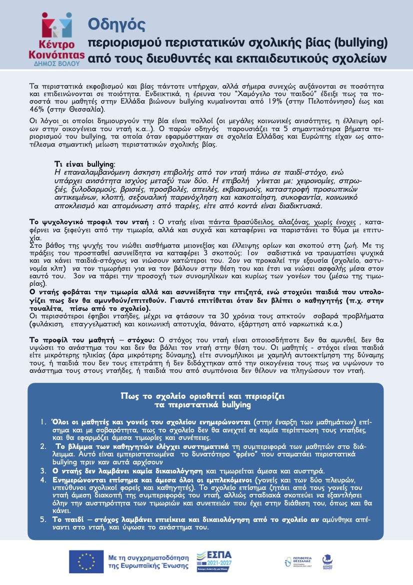 Bιωματική δράση για τη διαχείριση της λεκτικής και σωματικής βίας, με τους μαθητές των Ε και ΣΤ τάξεων του 5ου Δημοτικού σχολείου Βόλου