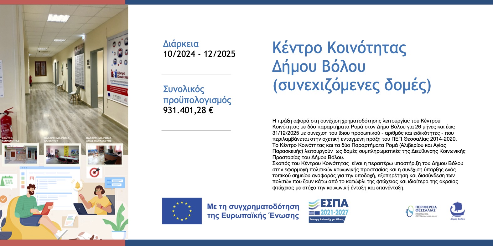 ΥΠΟΕΡΓΟ Ι Κέντρο Κοινότητας Δήμου Βόλου
