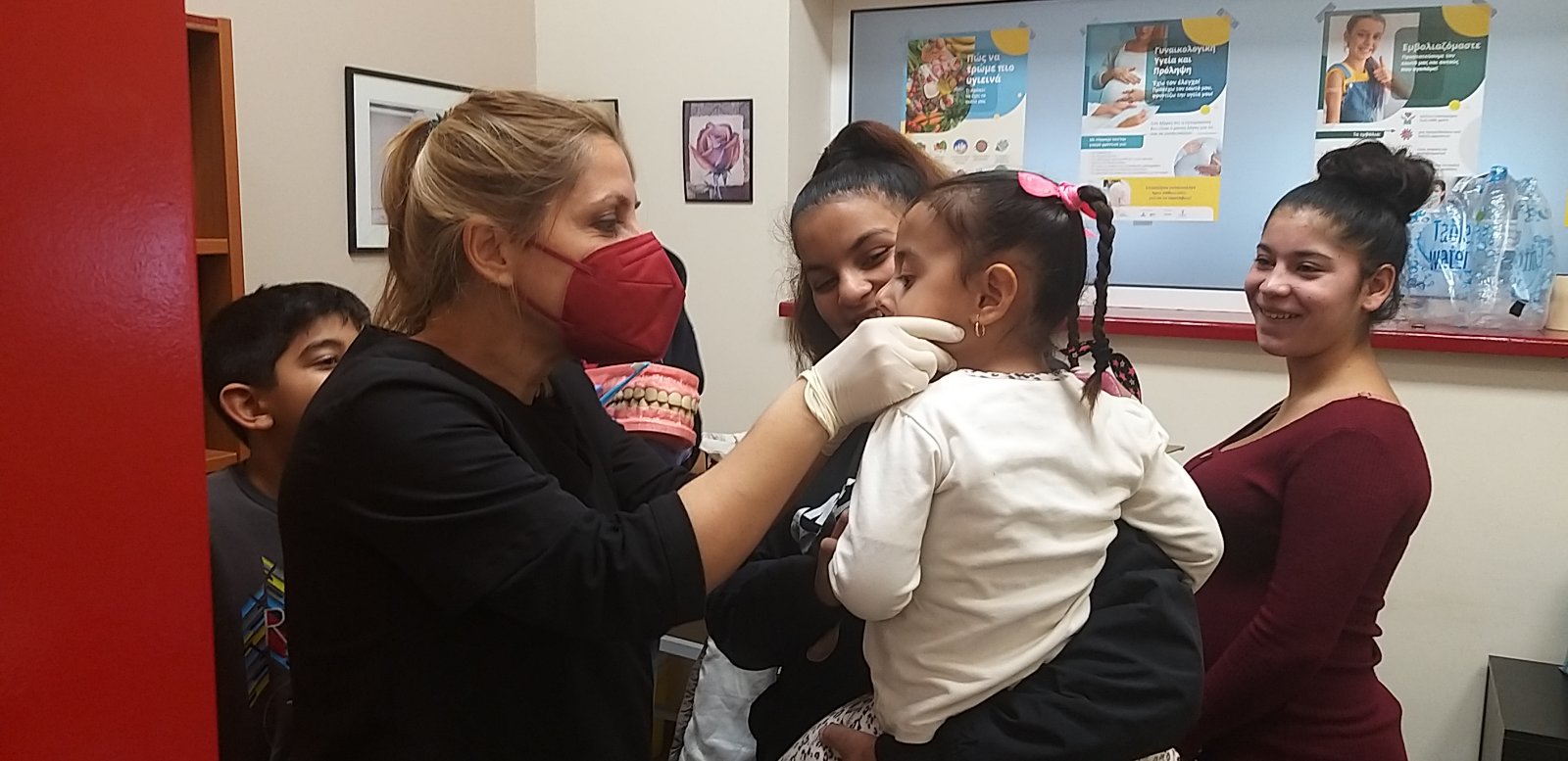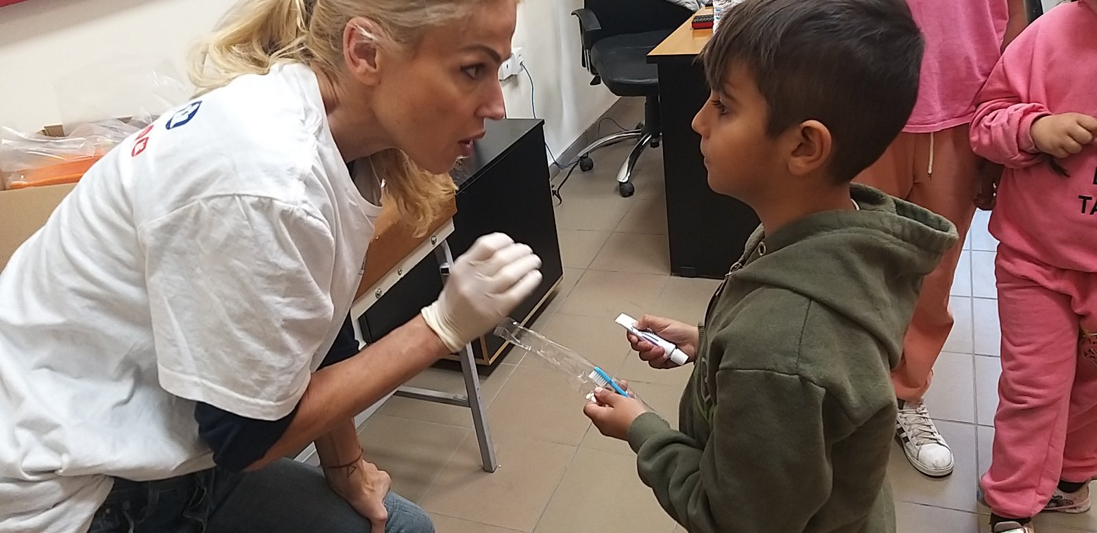 ΔΕΛΤΙΟ ΤΥΠΟΥ Παράλληλα με τις ομάδες των γυναικών πραγματοποιήθηκε οδοντιατρικήεξέταση στα παιδιά του οικισμού στη 1 & 2 Δεκεμβρίου 2023. Οδοντίατροι από την Ιατρική σχολή του ΕΚΠΑ εξέτασαν 49 παιδιά σχολικής ηλικίας στα οποία δόθηκαν οδηγίες, κατευθύνσεις αλλά και παραπομπές όπου χρειάστηκε.