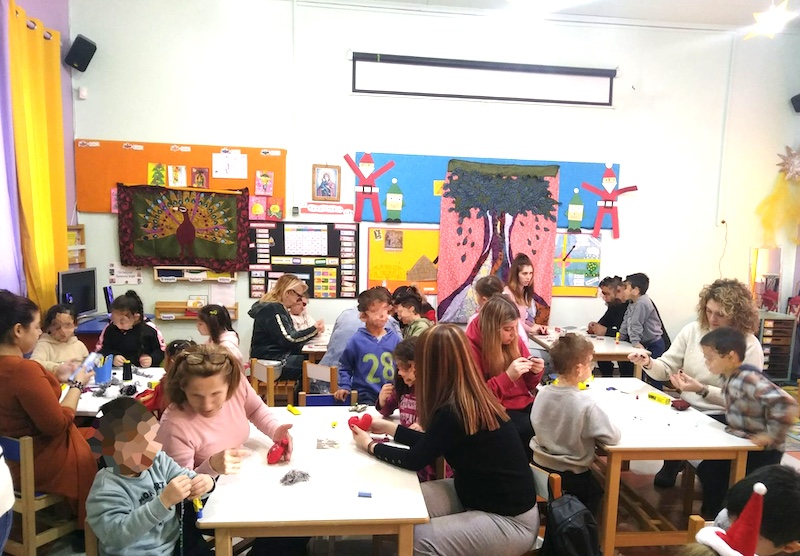 Τη Πέμπτη 14 Δεκεμβρίου η διαμεσολαβήτρια, η ψυχολόγος και η γυμνάστρια-εμψυχώτρια του Παραρτήματος Ρομά Αλιβερίου σε συνεργασία με τους εκπαιδευτικούς του 8ου Νηπιαγωγείου Νέας Ιωνίας οργάνωσαν εργαστήρι κατασκευής χριστουγεννιάτικων στολιδιών με τους γονείς και τους μαθητές του νηπιαγωγείου.
