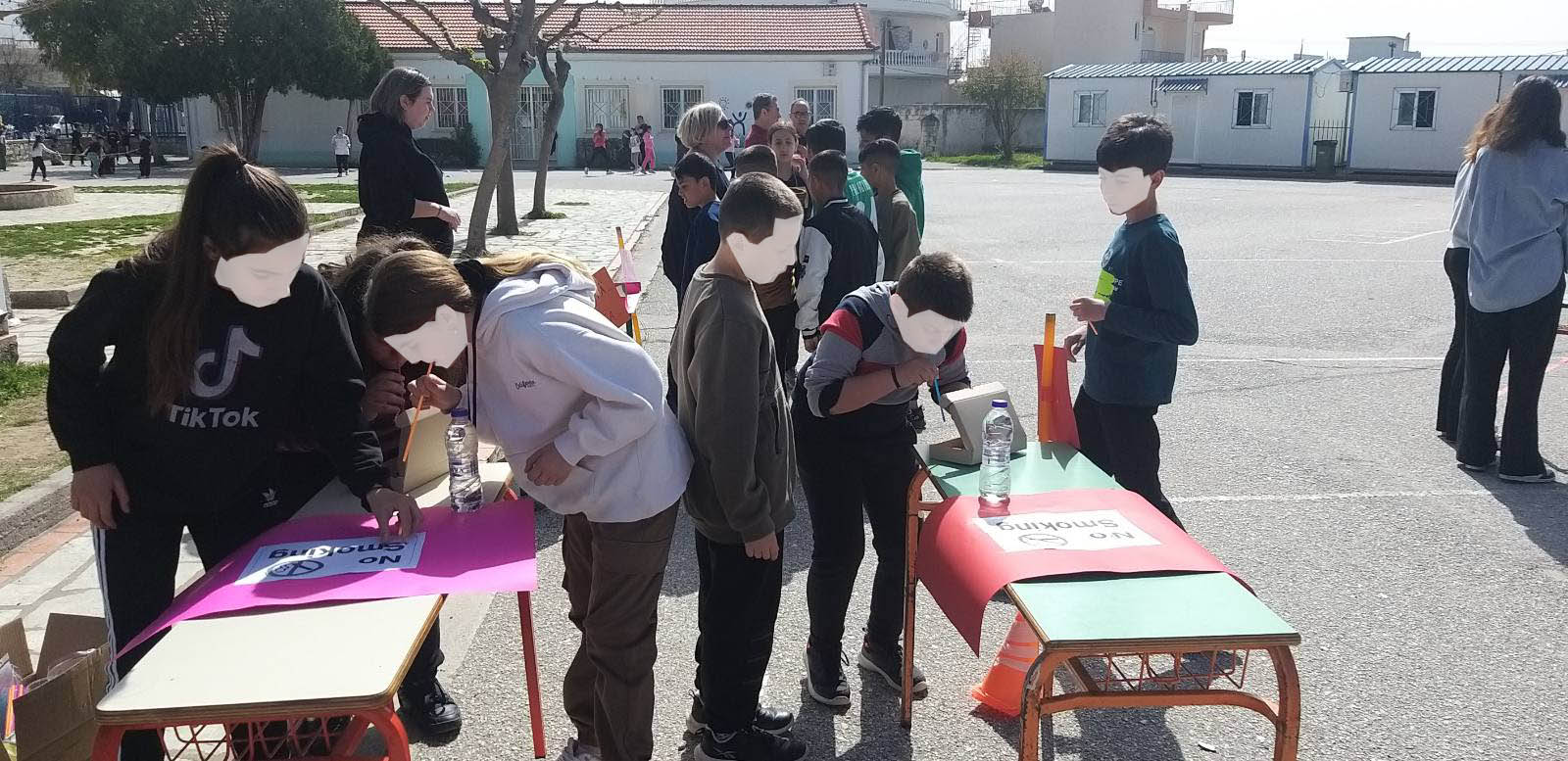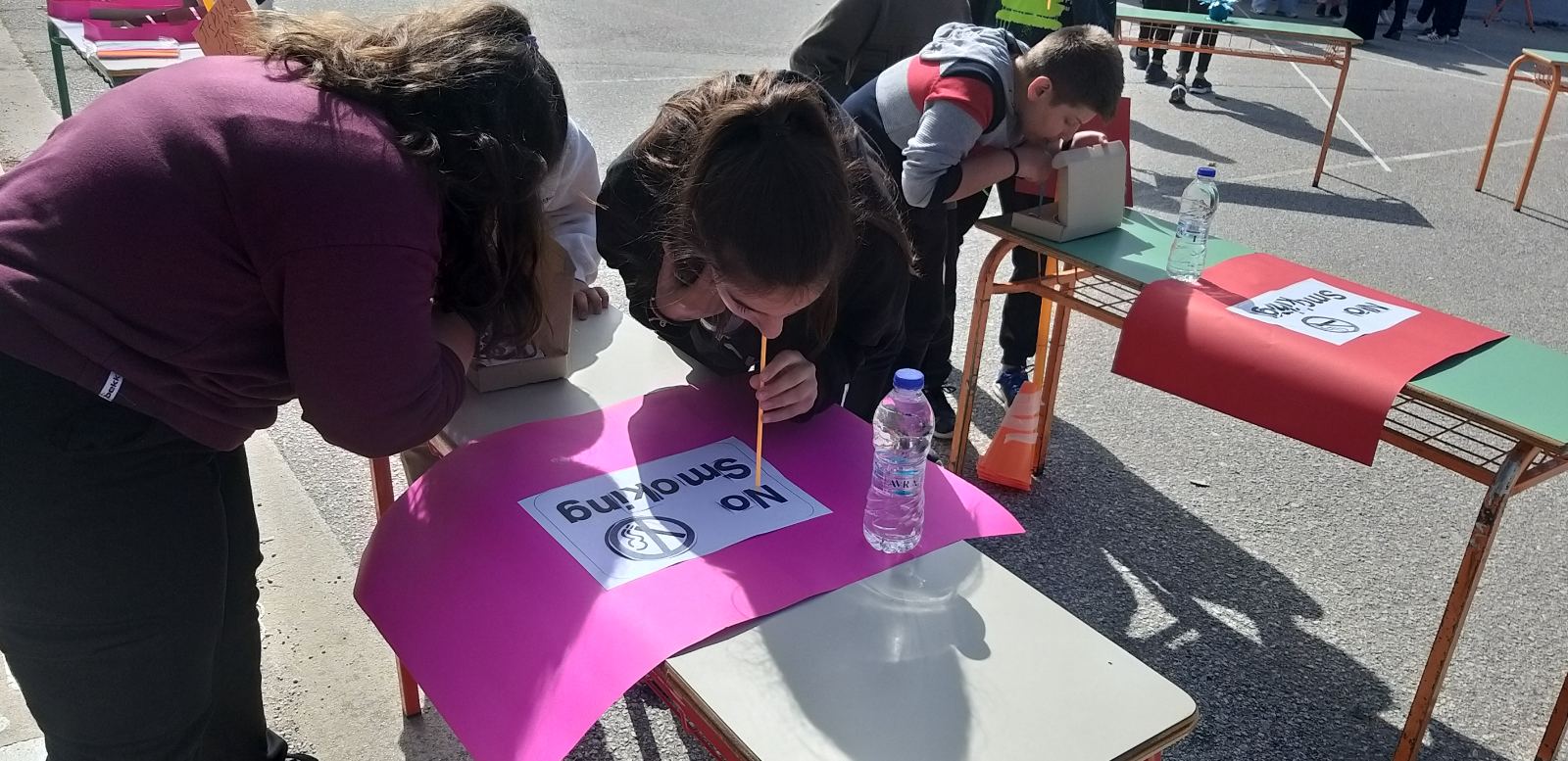 Η δράση ήταν αφιερωμένη στο κάπνισμα και στις συνέπειές του και στόχος ήταν οι μαθητές να ενημερωθούν για τη συνήθεια αυτή αλλά και μέσα από το παιχνίδι να βιώσουν τις συνέπειες της.