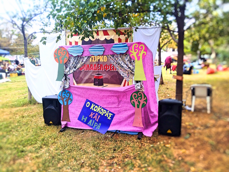 Το πρωί δόθηκε η παράσταση του κουκλοθεάτρου "Ο κόκορας και η λίρα" από τα στελέχη του κέντρου και τα παιδιά της ομάδας της δημιουργικής απασχόλησης. Τη παράσταση παρακολούθησαν και γυναίκες Ρομά απο τον οικισμό. Στη συνέχεια όλοι μαζί πραγματοποίησαν εργαστήριο κατασκευής τσιγγάνικου πουγκιού (κισί).