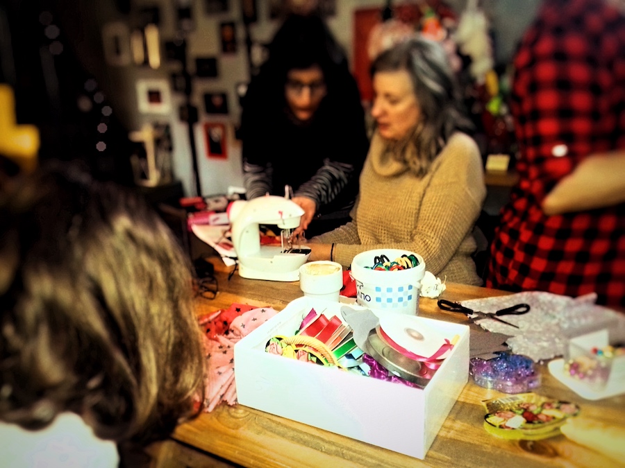 Το Σάββατο 15 Δεκεμβρίου 2018 η ομάδα δημιουργικής απασχόλησης εφήβων κοριτσιών και γυναικών του Κέντρου Ρομά Αλιβερίου της κοινωφελούς επιχείρησης ΚΕΚΠΑ-ΔΙΕΚ του δήμου Βόλου πραγματοποίησε στο καφέ La Petite Cantine εργαστήριο κατασκευής υφασμάτινων χριστουγεννιάτικων στολιδιών.
