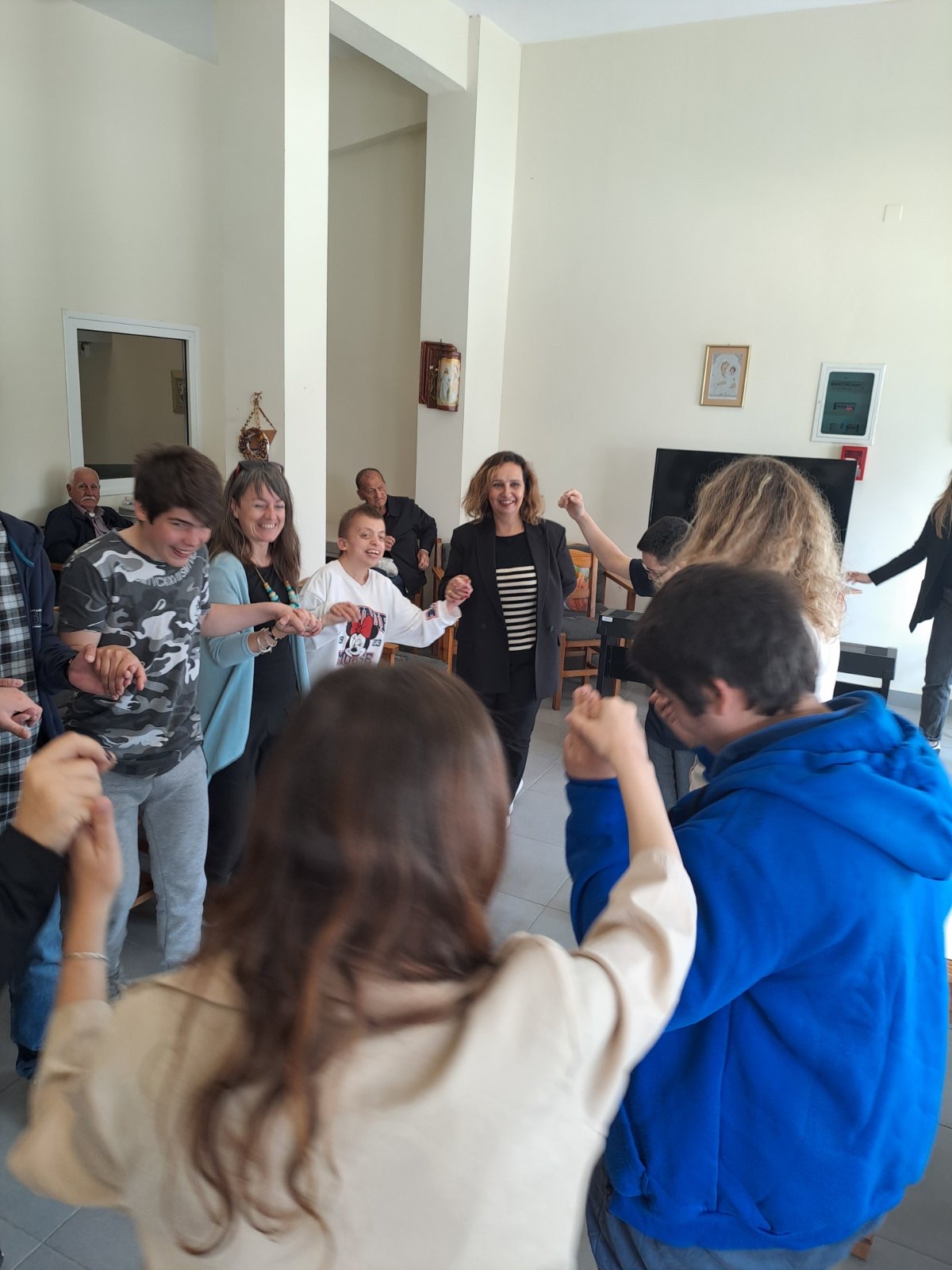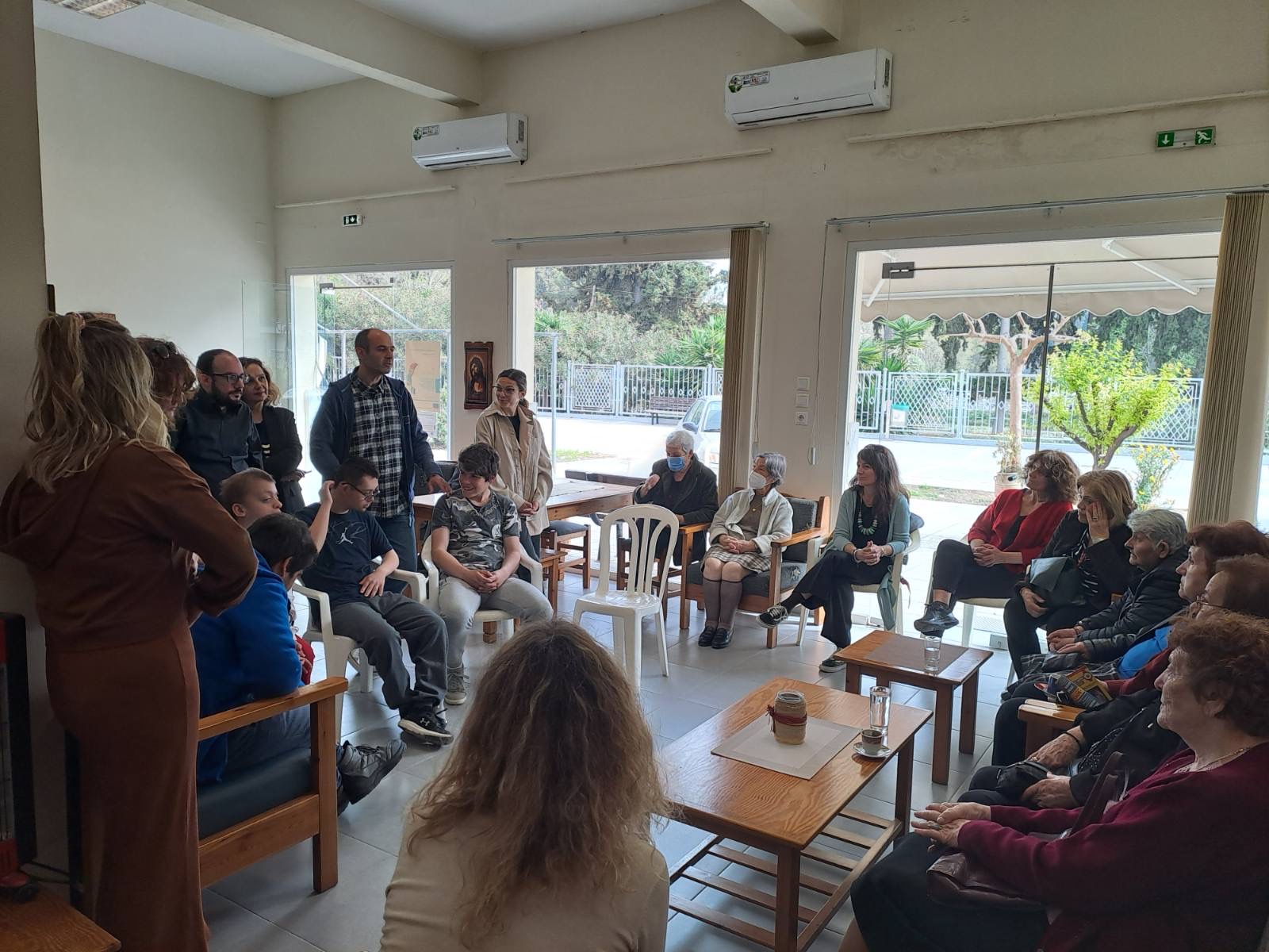 Την Τρίτη 02/04/2024, σε συνέχεια της συνάντησης που προηγήθηκε τον Φεβρουάριο μεταξύ της Υπεύθυνης του Κέντρου Ημερήσιας Φροντίδας Ηλικιωμένων (Κ.Η.Φ.Η.) Νέας Αγχιάλου κ. Μαρίας Ζαβού με τους εκπαιδευτικούς του Εργαστήριου Ειδικής Επαγγελματικής Εκπαίδευσης Κατάρτισης (Ε.Ε.Ε.ΕΚ) Αλμυρού, η Διευθύντρια του Ε.Ε.Ε.ΕΚ. Αλμυρού Μαρία Τσούγκρα, οι υπεύθυνοι εκπαιδευτικοί του προγράμματος «Παππού- Γιαγιά, θέλουμε μια αγκαλιά» Καλλιόπη Καραλή, Βησσαρίων Μπακάλης, Φίλιππος Στεργιανός κι η ομάδα μαθητών/τριων που συμμετέχουν στο συγκεκριμένο πρόγραμμα, είχαν την ευκαιρία να επισκεφθούν το Κ.Η.Φ.Η. Νέας Αγχιάλου με σκοπό να δημιουργηθεί μια γέφυρα επικοινωνίας ανάμεσα στα παιδιά και τους ηλικιωμένους κι ένα πλαίσιο διαγενεακής συνεργασίας.