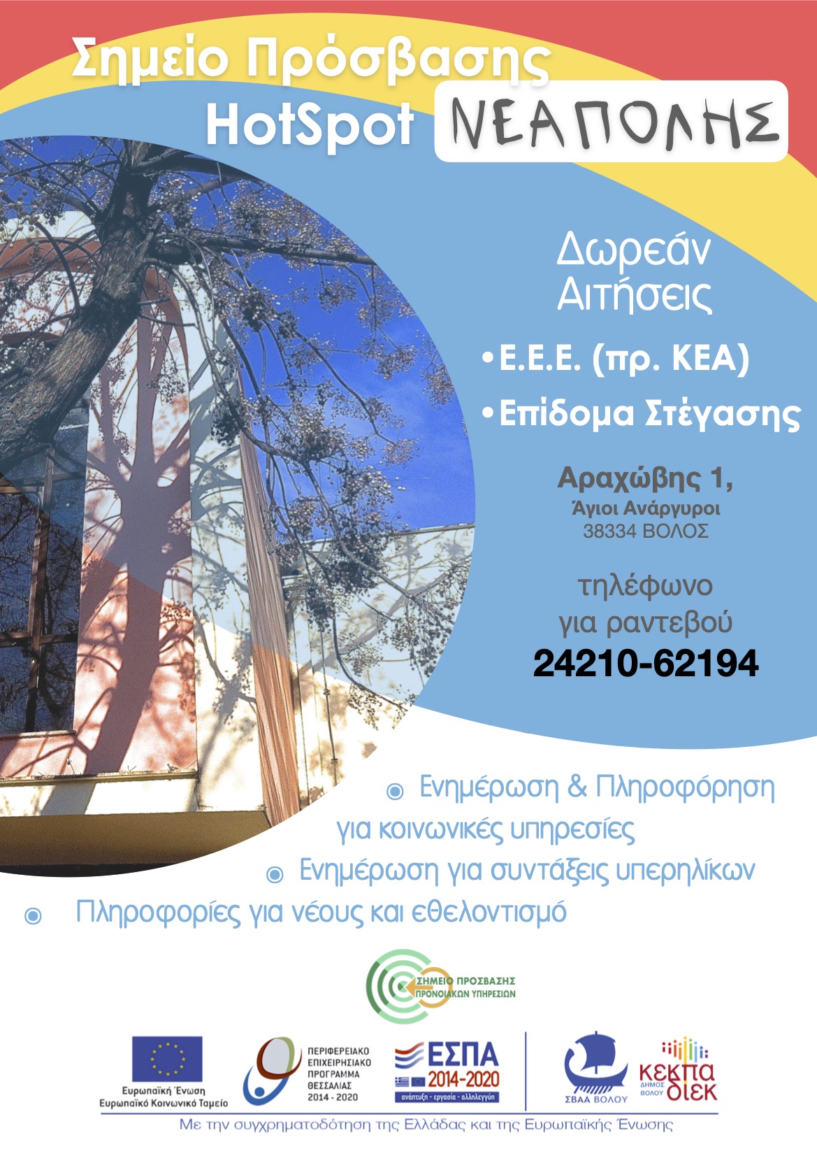 Αρ. ΟΠΣ ΠΡΑΞΗΣ: 6005087 Συνέχιση Λειτουργίας Κοινωνικού Hotspot Νεάπολης Δήμου Βόλου«ΕΠΙΧΕΙΡΗΣΙΑΚΟΣ ΣΧΕΔΙΑΣΜΟΣ ΤΟΥ ΔΗΜΟΥ ΒΟΛΟΥ ΓΙΑ ΤΗΝ ΒΙΩΣΙΜΗ ΑΣΤΙΚΗ ΑΝΑΠΤΥΞΗ (ΒΑΑ)». |