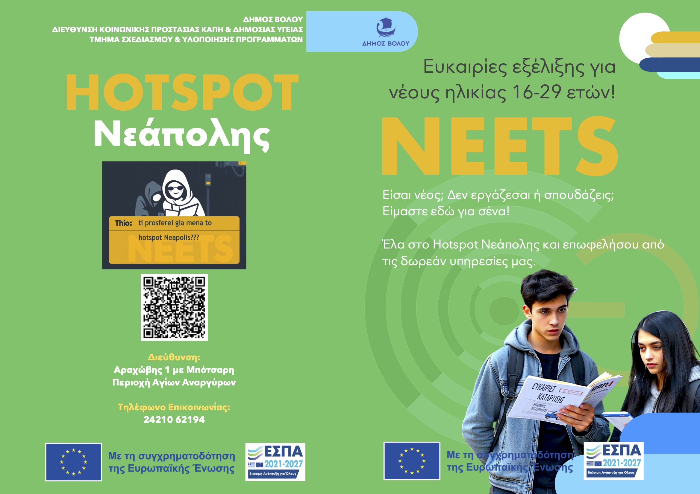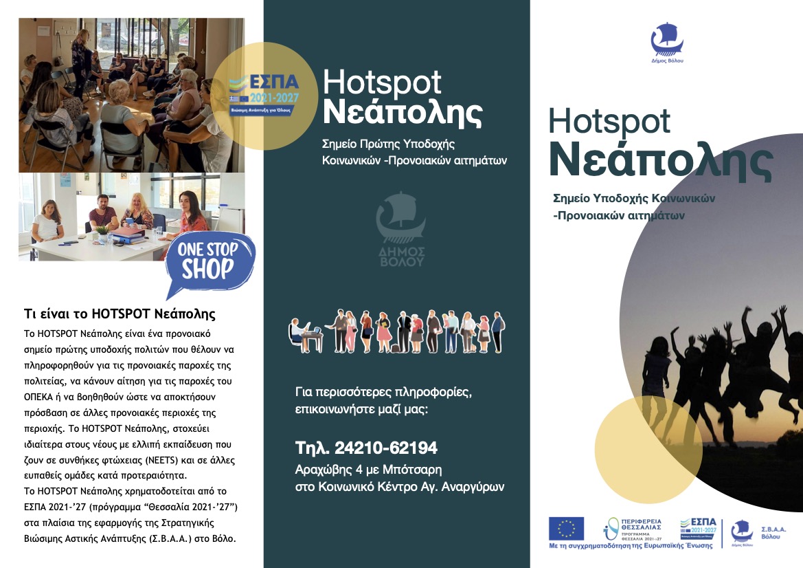 HOTSPOT Νεάπολης Συνέχιση Λειτουργίας Κοινωνικού Hotspot Νεάπολης Δήμου Βόλου «ΕΠΙΧΕΙΡΗΣΙΑΚΟΣ ΣΧΕΔΙΑΣΜΟΣ ΤΟΥ ΔΗΜΟΥ ΒΟΛΟΥ ΓΙΑ ΤΗΝ ΒΙΩΣΙΜΗ ΑΣΤΙΚΗ ΑΝΑΠΤΥΞΗ (ΒΑΑ)».